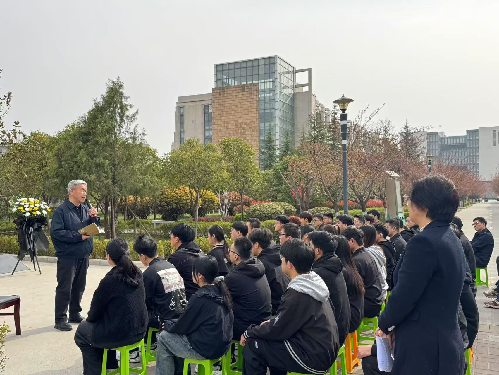 為引導(dǎo)青年學(xué)子繼承先烈遺志、厚植愛(ài)國(guó)情懷,4月4日上午,學(xué)生工作部在鄠邑校區(qū)杜斌丞雕像廣場(chǎng)舉辦“緬懷革命先烈 傳承紅色基因”——清明節(jié)追思杜斌丞烈士專題微黨課活動(dòng)。陜西省杜斌丞教育思想研究會(huì)會(huì)長(zhǎng)杜芳濱先生、學(xué)生工作部副部長(zhǎng)畢軼慧、經(jīng)濟(jì)管理學(xué)院黨委副書(shū)記楊生強(qiáng)、輔導(dǎo)員代表及各學(xué)生黨支部書(shū)記等50余人參與,活動(dòng)由畢軼慧主持。