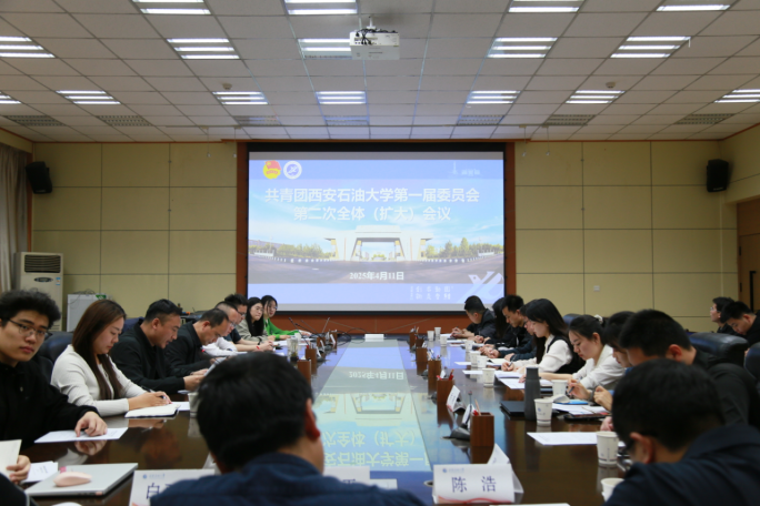 4月11日,共青團西安石油大學第一屆委員會第二次全體(擴大)會議在雁塔校區(qū)第一會議室召開。副校長趙健出席會議并講話,全體團委委員,馬克思主義學院團總支書記、預科班團支部負責人,校學生會、校研究生會主席團成員代表及各部門負責人代表參加會議。