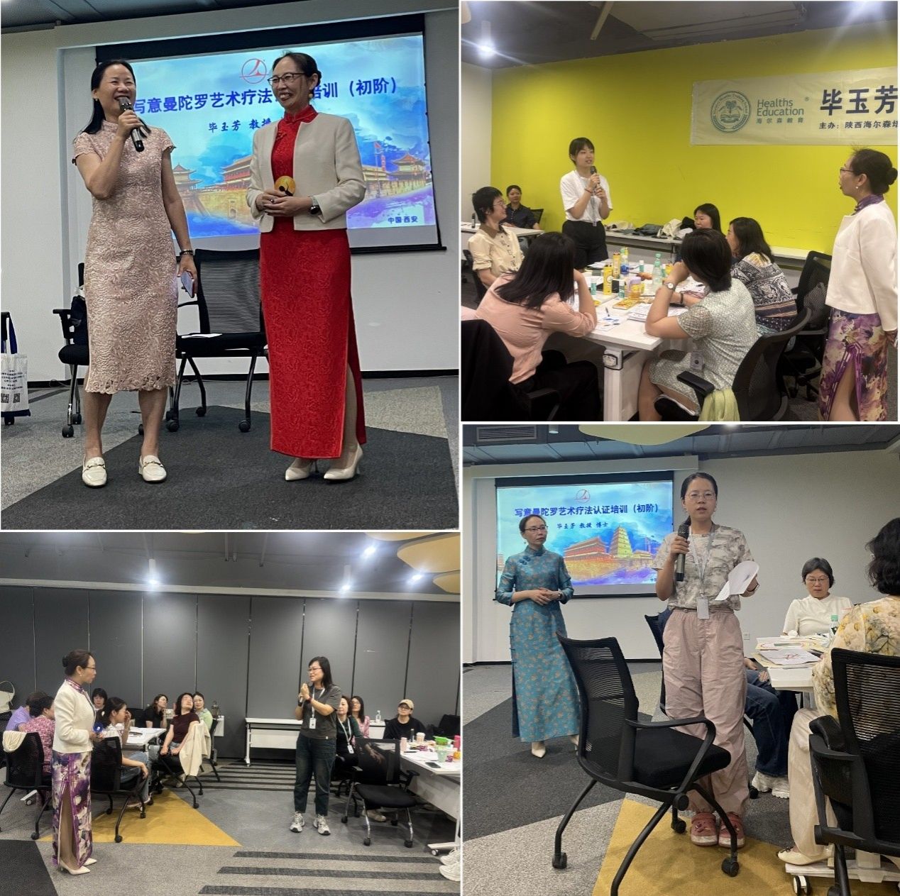 畢玉芳教授通過“理論+案例+體驗(yàn)”模式,引導(dǎo)參訓(xùn)者深度理解曼陀羅療法的應(yīng)用邏輯。大家在團(tuán)體繪畫中感受協(xié)作力量,通過自由創(chuàng)作探索潛意識(shí)情緒,并借助動(dòng)態(tài)曼陀羅記錄壓力轉(zhuǎn)化過程。參訓(xùn)者認(rèn)為,這種非語言干預(yù)方式降低了學(xué)生的心理防御,為師生溝通開辟了更具溫度的路徑,同時(shí)幫助教師更敏銳地識(shí)別學(xué)生心理需求。