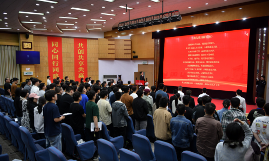 大會間隙,播放了學(xué)院往屆研究生畢業(yè)生錄制的祝福視頻。大會圓滿完成各項既定任務(wù),通過民主投票選舉產(chǎn)生了石油工程學(xué)院第一屆研究生會委員會。石油工程學(xué)院第一屆研究生會委員會全體成員,面向國旗就職宣誓。第一屆研究生會委員會代表張斌向大會作工作展望。最后,大會在全場齊唱的《我為祖國獻石油》中落下帷幕。