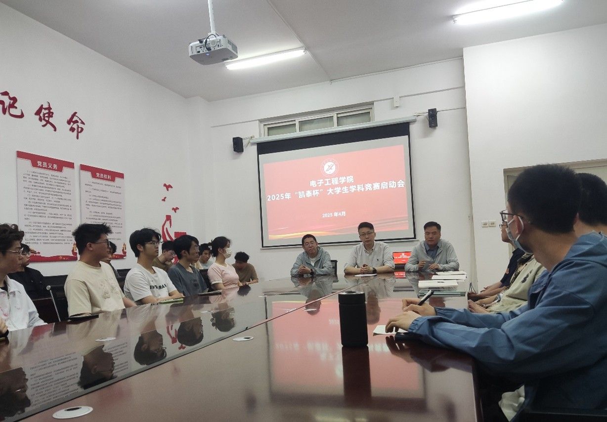為激發(fā)學(xué)生創(chuàng)新思維,提升實(shí)踐能力,進(jìn)一步推動(dòng)學(xué)院學(xué)科競(jìng)賽工作邁向新高度,4月22日下午,電子工程學(xué)院在行知樓321會(huì)議室召開2025年“凱泰杯”大學(xué)生學(xué)科競(jìng)賽啟動(dòng)會(huì)。院長李飛、實(shí)驗(yàn)中心教師代表、輔導(dǎo)員及各年級(jí)20余名學(xué)科競(jìng)賽參賽學(xué)生代表參會(huì)。