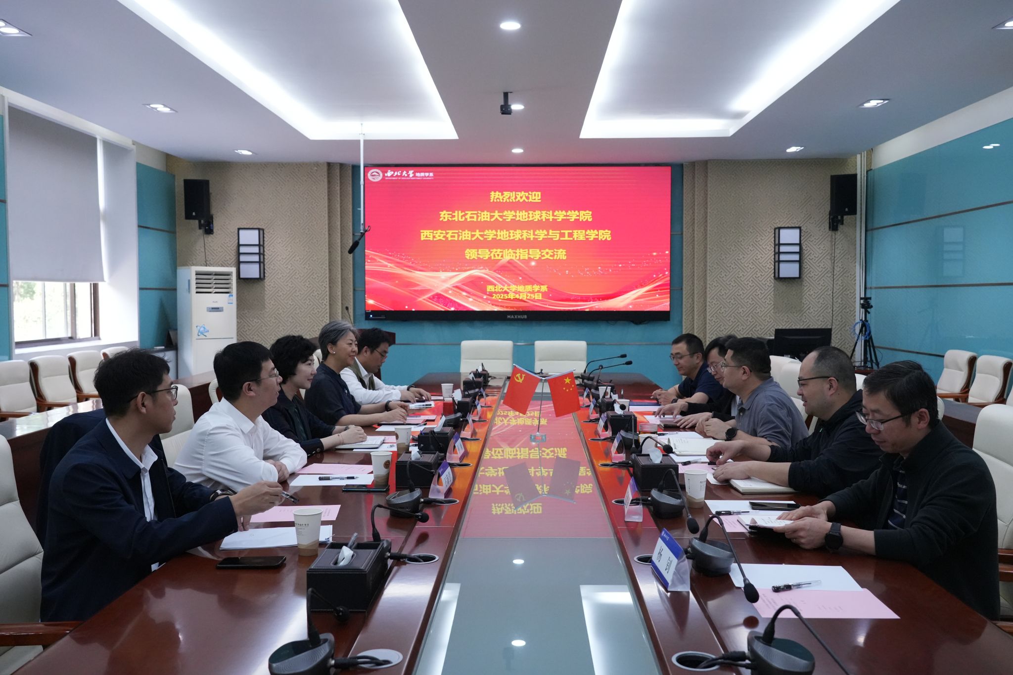 為深入貫徹落實黨的二十屆三中全會和全國教育大會精神,加強拔尖人才培養(yǎng),4月25日上午,地球科學與工程學院黨委書記高黎、院長宋立軍,聯(lián)合東北石油大學地球科學學院調(diào)研組,赴西北大學地質(zhì)學系開展“學科交叉賦能人才培養(yǎng),黨建引領推動高質(zhì)量發(fā)展”專題調(diào)研,聚焦新時代地質(zhì)學科建設、拔尖創(chuàng)新人才培養(yǎng)體系構建及黨建業(yè)務深度融合等,進一步探討石油地學領域校際協(xié)同發(fā)展新模式。東北石油大學地球科學學院黨委書記韋丹寧、院長孫雨、副院長王海學,西北大學地質(zhì)學系黨委副書記李政倫,副主任龍曉平、王建強、李青彥等參加會議。會議由西北大學地質(zhì)學系黨委書記陳峰主持。