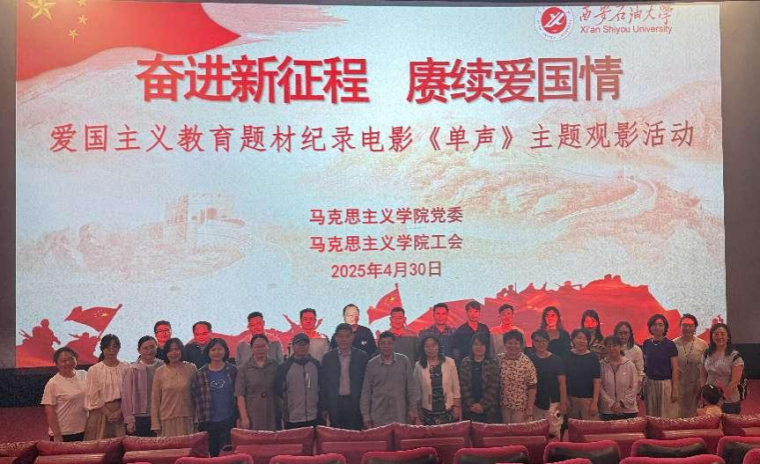 為深入學習貫徹黨的二十大精神,弘揚愛國主義精神,增強教職工的民族自豪感與責任感,4月30日下午,馬克思主義學院黨委、工會聯(lián)合組織學院教職工40余人觀看了愛國主義題材紀錄電影《單聲》。本次主題活動旨在通過生動的影像教育引導思政課教師堅定理想信念,強化使命擔當,將愛國熱情轉化為立德樹人的實際行動。