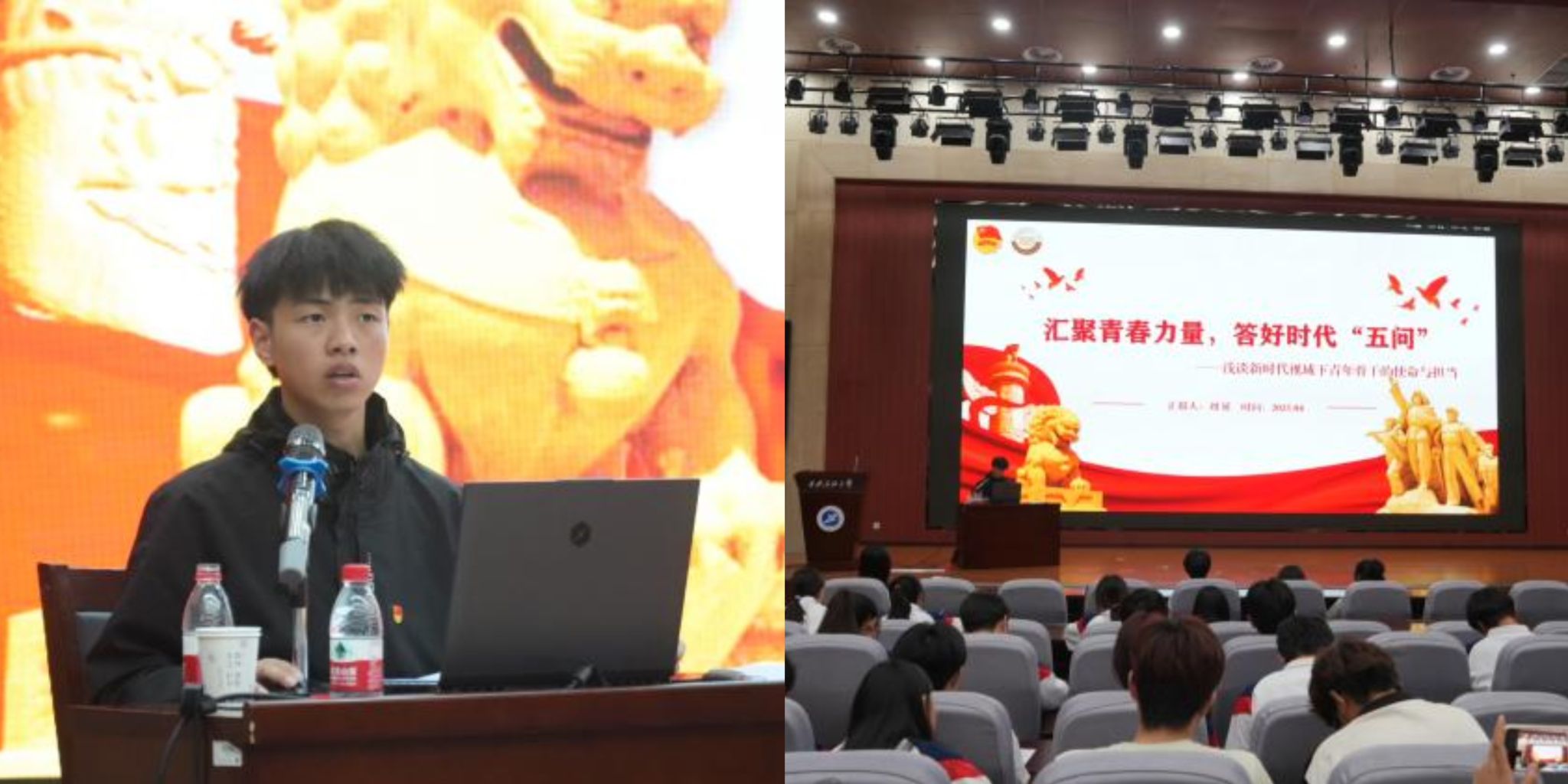 4月16日,培訓(xùn)班首講邀請西北大學(xué)校學(xué)生會執(zhí)行主席陶詩雅、青年先鋒宣講團(tuán)成員馬雪凝擔(dān)任主講嘉賓。陶詩雅以《我的學(xué)生干部經(jīng)歷與思考》為題,從“選擇”“平衡”“初心”三個維度,分享了統(tǒng)籌大型活動、平衡學(xué)業(yè)與工作的經(jīng)驗(yàn),提出“從執(zhí)行者到引領(lǐng)者”的成長路徑。馬雪凝以《學(xué)習(xí)黃文秀精神 做好新時代長征人》為主題,通過黃文秀扎根脫貧攻堅(jiān)一線的感人事跡,號召學(xué)員將個人理想融入社會發(fā)展。