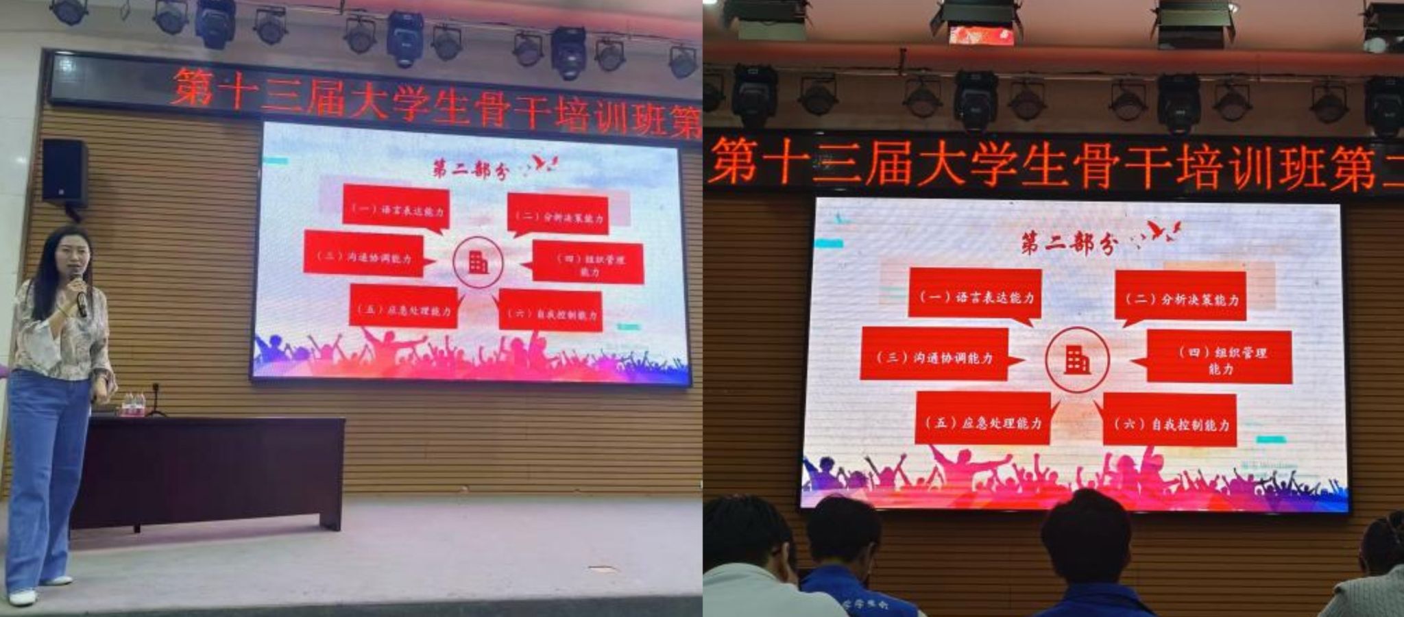 4月22日,培訓(xùn)班第二講邀請校團(tuán)委組織部部長付強(qiáng)作為主講嘉賓,她圍繞學(xué)生干部的初心與能力提升展開培訓(xùn),強(qiáng)調(diào)理想信念的重要性,并提出學(xué)生干部應(yīng)具備語言表達(dá)、分析決策、溝通協(xié)調(diào)、組織管理、應(yīng)急處理、自我控制六大核心能力。
