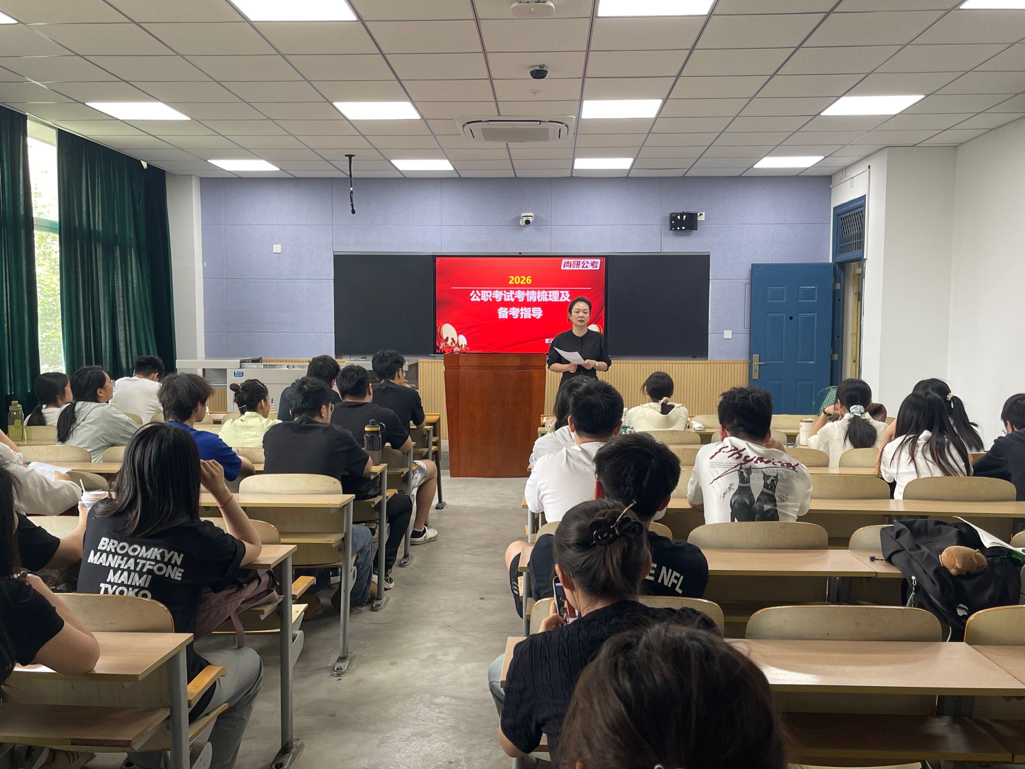 為助力2026屆畢業(yè)生科學(xué)備戰(zhàn)公務(wù)員考試,精準(zhǔn)把握考情趨勢,提升應(yīng)試能力。5月7日下午,人文學(xué)院在博覽樓A105舉辦“2026年公職考試考情梳理及備考指導(dǎo)”專題講座。本次活動由人文學(xué)院聯(lián)合尚研公考共同發(fā)起,人文學(xué)院黨委副書記盛丹、尚研公考名師王蘅、2021級輔導(dǎo)員張馨元出席活動,人文學(xué)院與經(jīng)管學(xué)院意向考公學(xué)生到場參與。