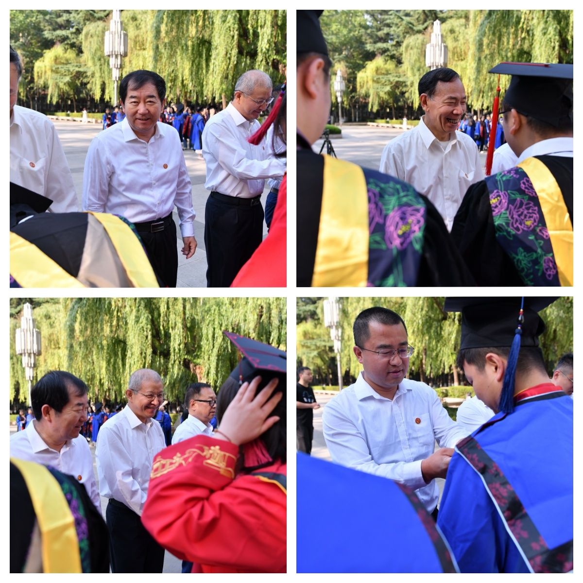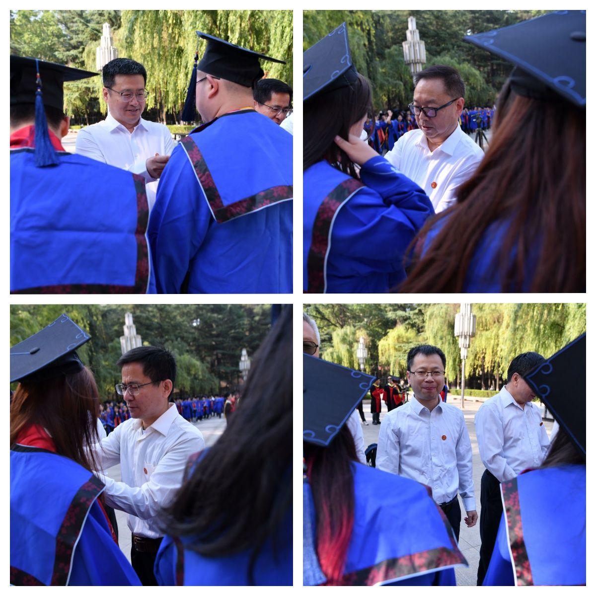隨后,全體師生在東方石油樓前拍攝了畢業(yè)合影。畢業(yè)生們身著新款學位服,佩戴閃亮院徽,在鏡頭前留下了珍貴的青春記憶。畢業(yè)生們結(jié)合石油元素,鐵人廣場、忠實廣場、春雨園為背景,用鏡頭記錄下這難忘的時刻。