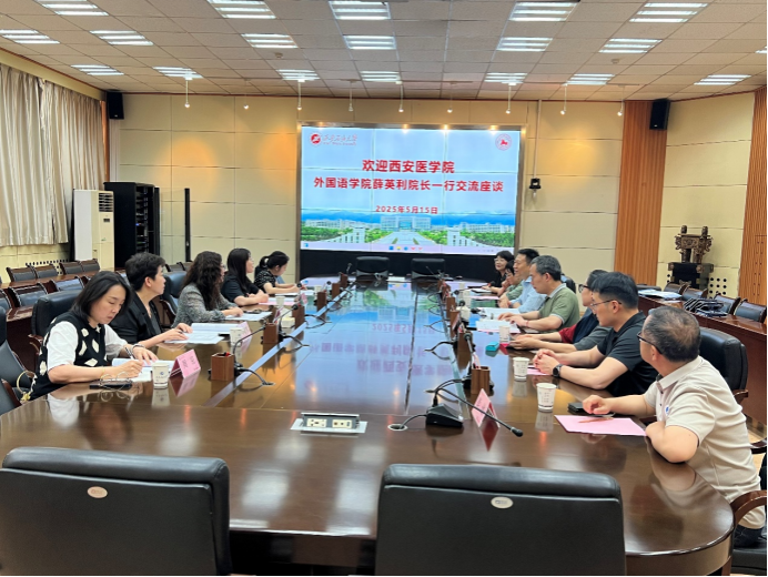 為加強校際合作、促進外語學科高質(zhì)量發(fā)展,5月15日下午西安醫(yī)學院外國語學院院長薛英利一行5人蒞臨我校外國語學院座談交流。交流會在雁塔校區(qū)會議中心第二會議室召開。雙方學院黨政領(lǐng)導和骨干教師代表圍繞多個關(guān)鍵議題展開深入探討,共商行業(yè)院校外語學科建設(shè)新路徑。