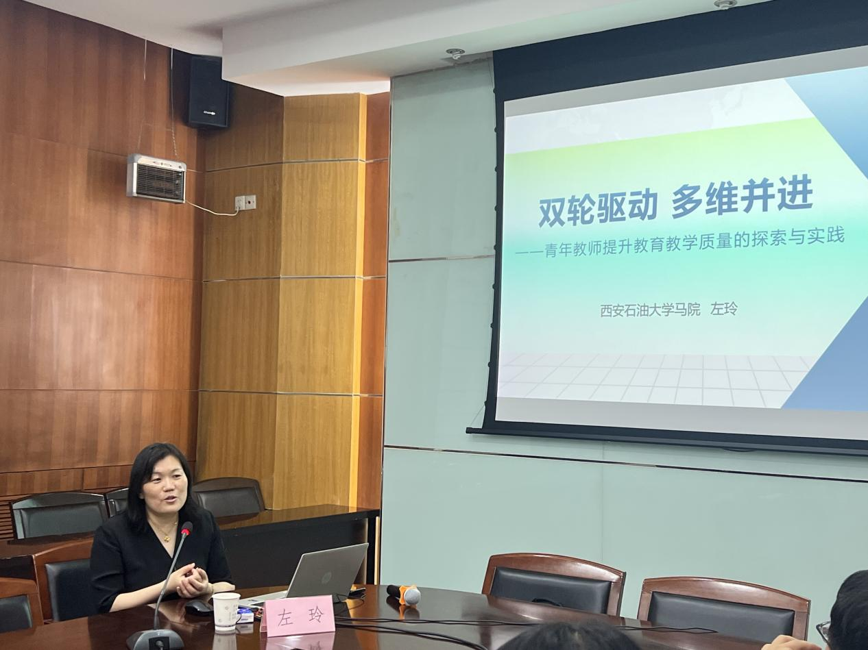 馬克思主義學(xué)院左玲教授作題為“雙輪驅(qū)動(dòng) 多維并進(jìn)——青年教師提升教育教學(xué)質(zhì)量的探索與實(shí)踐”主題分享,她圍繞教育變革背景下青年教師的時(shí)代使命、提升教育教學(xué)質(zhì)量的“1+2+3”路徑模式、青年教師未來發(fā)展的破界進(jìn)階三大問題,聚焦“1”個(gè)核心能力、“2”個(gè)驅(qū)動(dòng)引擎和“3”個(gè)支撐體系,結(jié)合20余年的從教經(jīng)驗(yàn)與實(shí)踐案例,分享了自己豐富的課堂教學(xué)經(jīng)驗(yàn)以及省級(jí)思政課教師“大練兵”活動(dòng)參賽經(jīng)驗(yàn),探討青年教師如何從“破壁者”轉(zhuǎn)向“融合者”、邁向“引領(lǐng)者”的成長規(guī)劃與躍升策略,為與會(huì)教師提供了明晰的發(fā)展思路和有益的教學(xué)科研經(jīng)驗(yàn)建議,助力青年教師在教學(xué)創(chuàng)新、科研轉(zhuǎn)化、社會(huì)服務(wù)中實(shí)現(xiàn)高質(zhì)量發(fā)展。