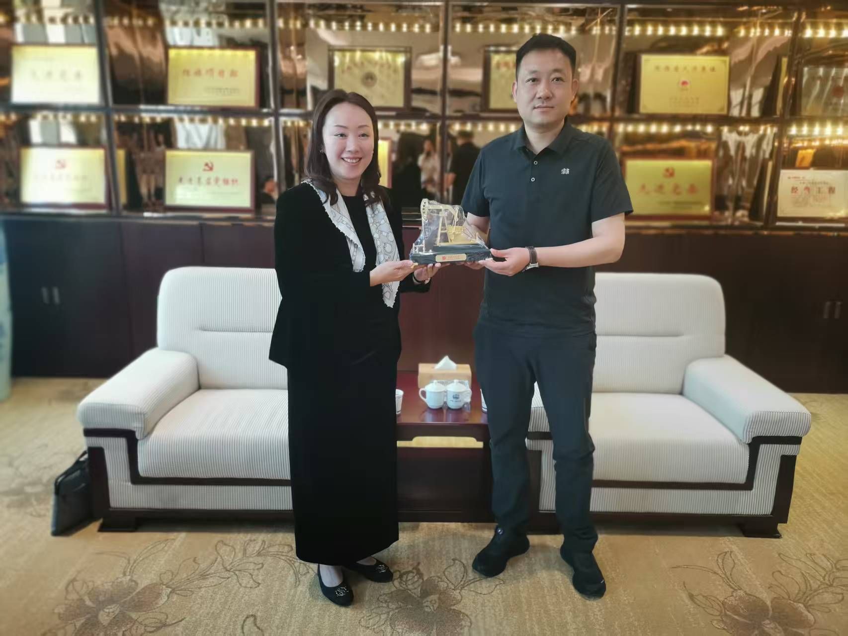 賈莉娜代表學(xué)院向中鐵一局五公司贈送了學(xué)校紀(jì)念品,對五公司的熱情接待表示了衷心的感謝。她表示學(xué)院希望與中鐵一局五公司在更多領(lǐng)域開展更深入的合作,力求特色發(fā)展、內(nèi)涵發(fā)展,在科研服務(wù)方面,充分發(fā)揮學(xué)院的學(xué)科優(yōu)勢,為企業(yè)提供技術(shù)支持和咨詢服務(wù),助力企業(yè)技術(shù)創(chuàng)新與升級;在學(xué)生就業(yè)方面,進(jìn)一步加強(qiáng)與公司的溝通與協(xié)作,為企業(yè)輸送更多高素質(zhì)的專業(yè)人才;在實習(xí)實踐方面,繼續(xù)優(yōu)化實習(xí)計劃,共同打造更具針對性和實效性的實習(xí)課程體系,提升學(xué)生的實踐能力和綜合素質(zhì)。