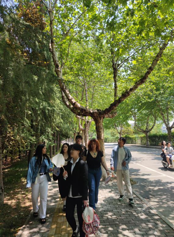 之后,美國(guó)學(xué)生漫步校園,感受中式建筑與現(xiàn)代校園風(fēng)貌的交融,中美學(xué)生相互分享各自的校園生活、文化習(xí)俗,碰撞出多元文化交流的火花,結(jié)下了深厚友誼。