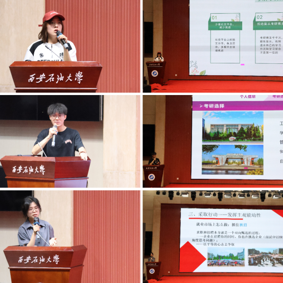 2021級優(yōu)秀學(xué)生代表金倩茹、榮崇、李亞菲依次做考研、就業(yè)經(jīng)驗分享。他們結(jié)合自身經(jīng)歷,從目標(biāo)確立、時間規(guī)劃、復(fù)習(xí)策略、信息搜集、心態(tài)調(diào)整到簡歷制作、面試技巧、實(shí)習(xí)選擇、offer決策等多個維度,與同學(xué)們展開分享交流,為同學(xué)們提供實(shí)戰(zhàn)心得。