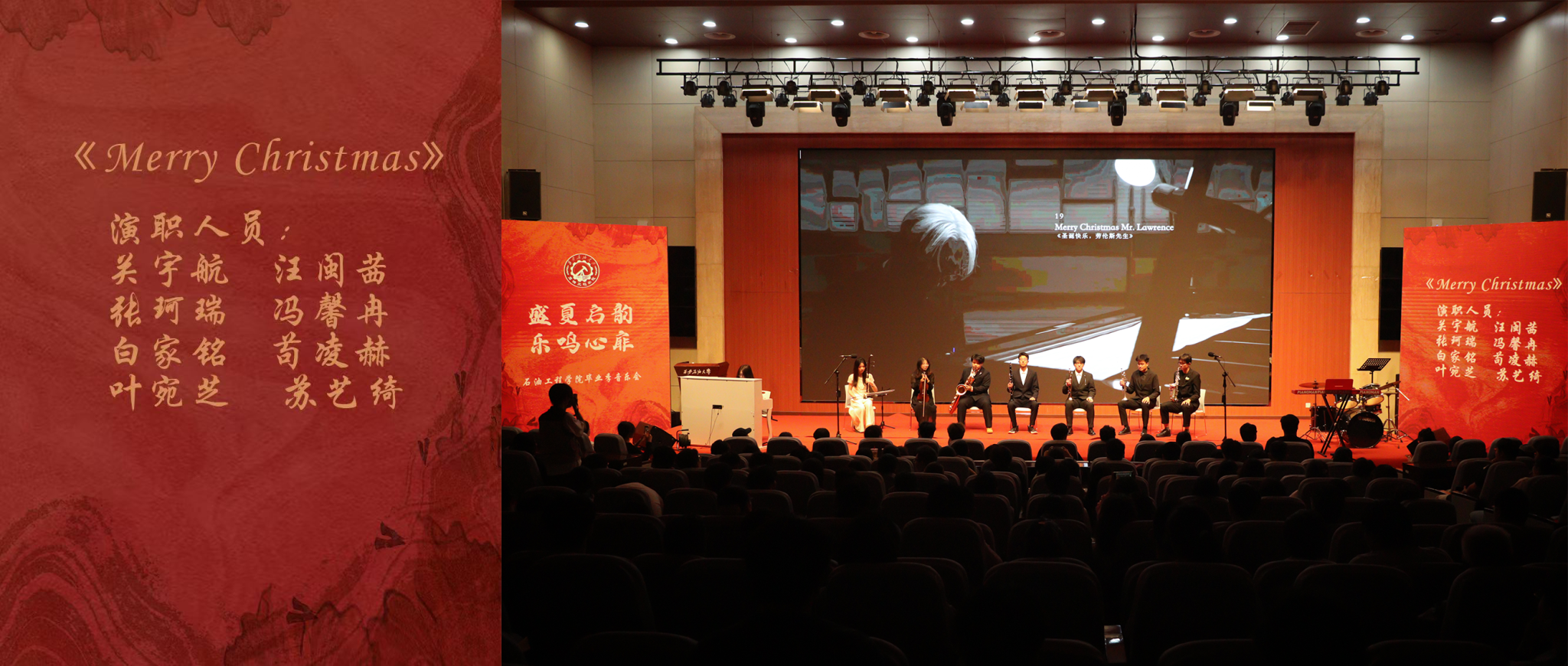 管弦樂Merry Christmas Mr. Lawrence以其獨(dú)特而富有張力的演繹,生動地展現(xiàn)出恢復(fù)辦學(xué)初期,盡管面臨著教學(xué)設(shè)施完善、師資隊(duì)伍擴(kuò)充磨合等諸多波折,但大家始終保持著樂觀積極的心態(tài)。每一個音符都傳遞著從容與堅(jiān)韌,無論遇到怎樣的困難,都以輕松的姿態(tài)去化解,向著光明的未來大步邁進(jìn),每一次困境中的突圍都讓新生的學(xué)校愈發(fā)堅(jiān)韌,煥發(fā)出新的生機(jī)與活力。