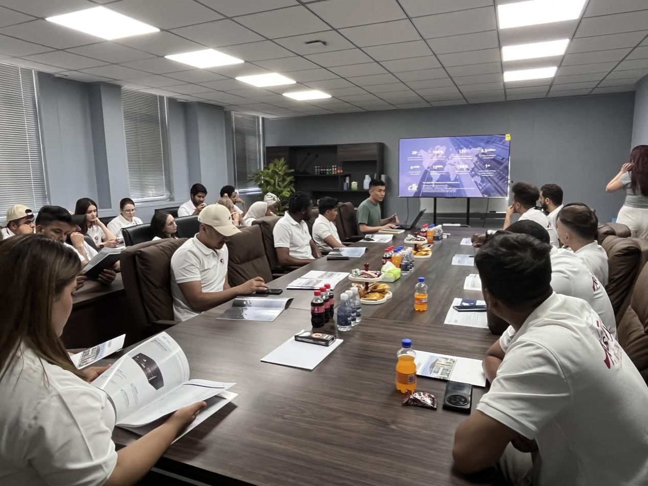 參觀結(jié)束后,公司技術(shù)支持負責人王金勝為留學生們帶來了一場精彩的報告會。他詳細介紹了長風動力的發(fā)展歷程、全球化戰(zhàn)略布局以及核心技術(shù)優(yōu)勢,通過生動的案例和深入淺出的講解,幫助留學生們對公司有了更全面、更深刻的認識。在互動環(huán)節(jié)中,留學生們圍繞“新能源技術(shù)發(fā)展趨勢”“國際市場合作機遇”等話題積極提問,王金勝結(jié)合行業(yè)實際一一解答,并鼓勵大家充分發(fā)揮跨文化背景優(yōu)勢,將創(chuàng)新思維融入未來的職業(yè)規(guī)劃中。