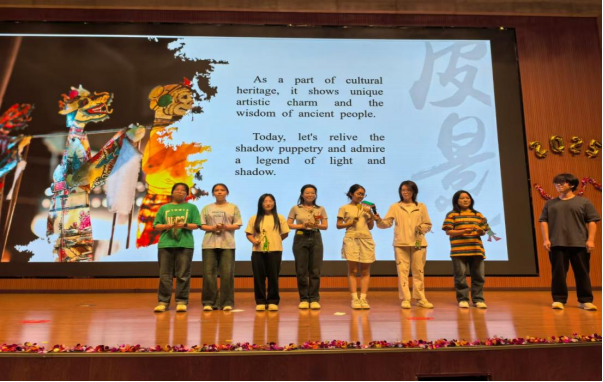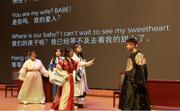 學(xué)子們以英語為舟,破浪前行,整個(gè)舞臺成為了文化交流的璀璨窗口。經(jīng)濟(jì)管理學(xué)院張?jiān)茊吹纳钋楠?dú)唱《Strawberries & Cigarettes》和電子工程學(xué)院馬翔宇獻(xiàn)唱的迪士尼經(jīng)典《Reflection》盡顯聲音魅力;新能源學(xué)院史沐涵演繹的《Tough Love》更是將情感與語言技巧融為一體;計(jì)算機(jī)學(xué)院、地球科學(xué)與工程學(xué)院帶來的《長發(fā)公主》《狗狗博客》及理學(xué)院呈現(xiàn)的《奇跡男孩》配音秀,精準(zhǔn)捕捉角色神韻,展現(xiàn)了卓越的語音模仿與表達(dá)力;人文學(xué)院張藝菲與新能源學(xué)院高天樂等聯(lián)袂獻(xiàn)演的傳統(tǒng)《嫦娥奔月》皮影戲,光影流轉(zhuǎn)間流淌著東方神韻;石油工程學(xué)院施瀾、李熠輝創(chuàng)新的《傳說中的英語相聲》,妙語連珠中架起中西幽默的橋梁;人文學(xué)院學(xué)子演繹的《武林外傳》情景劇,則為經(jīng)典注入國際化表達(dá)。歌曲串燒由來自石工、經(jīng)管、電工、地科、計(jì)算機(jī)、材料、人文、化工、理學(xué)院、新能源、機(jī)械等11個(gè)學(xué)院的近100名學(xué)子共同完成,《Take me home》《Country Road》經(jīng)典旋律響徹全場,氣勢恢宏,綜合性大學(xué)的育人優(yōu)勢在此刻熠熠生輝。從臺前的演員陣容到幕后的技術(shù)支撐,處處可見各個(gè)學(xué)院廣泛參與的身影,每一個(gè)環(huán)節(jié)的緊密銜接,都是跨學(xué)院團(tuán)隊(duì)協(xié)作精神的勝利。