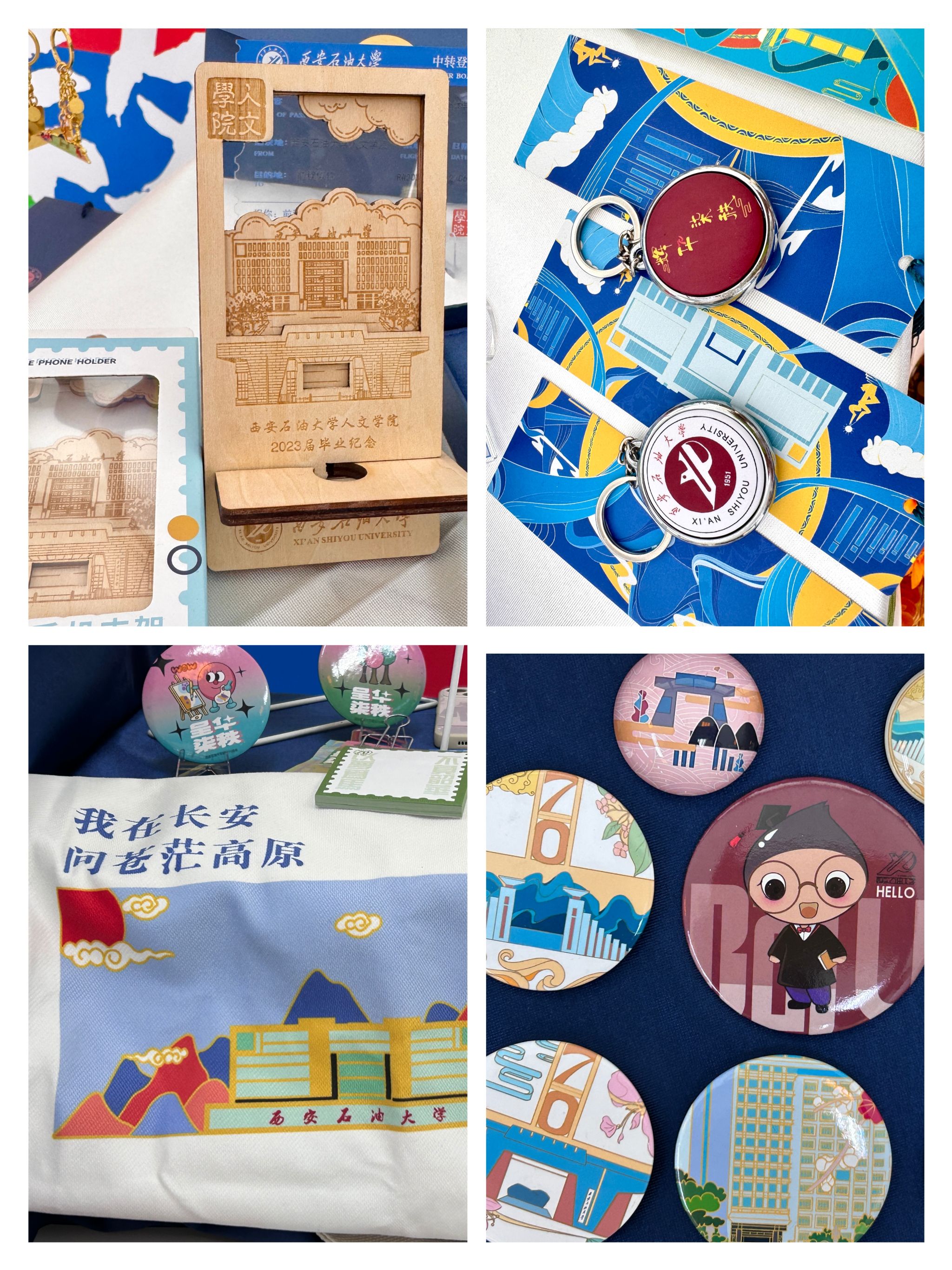 無人文創(chuàng)集市匯集了人文學院學生精心設(shè)計的各類主題文創(chuàng)作品,涵蓋學習用品、生活好物、藝術(shù)裝飾等多個品類。展臺上,印有校訓、校園風景的定制筆記本、書簽、明信片等文具類產(chǎn)品兼具實用性與紀念意義;以學校標志性建筑為靈感的徽章、鑰匙扣、帆布包等文創(chuàng)周邊,展現(xiàn)了學子對校園的深厚情感;還有學生手繪的原創(chuàng)IP形象衍生品等藝術(shù)創(chuàng)作,將西石大的文化底蘊與青春創(chuàng)意完美融合。值得一提的是,許多作品融入了“鐵人精神”“石油特色”等學校特有元素,體現(xiàn)了學生們對學校歷史與精神的深刻理解,也傳遞出新時代青年傳承校風、為校爭光的決心。