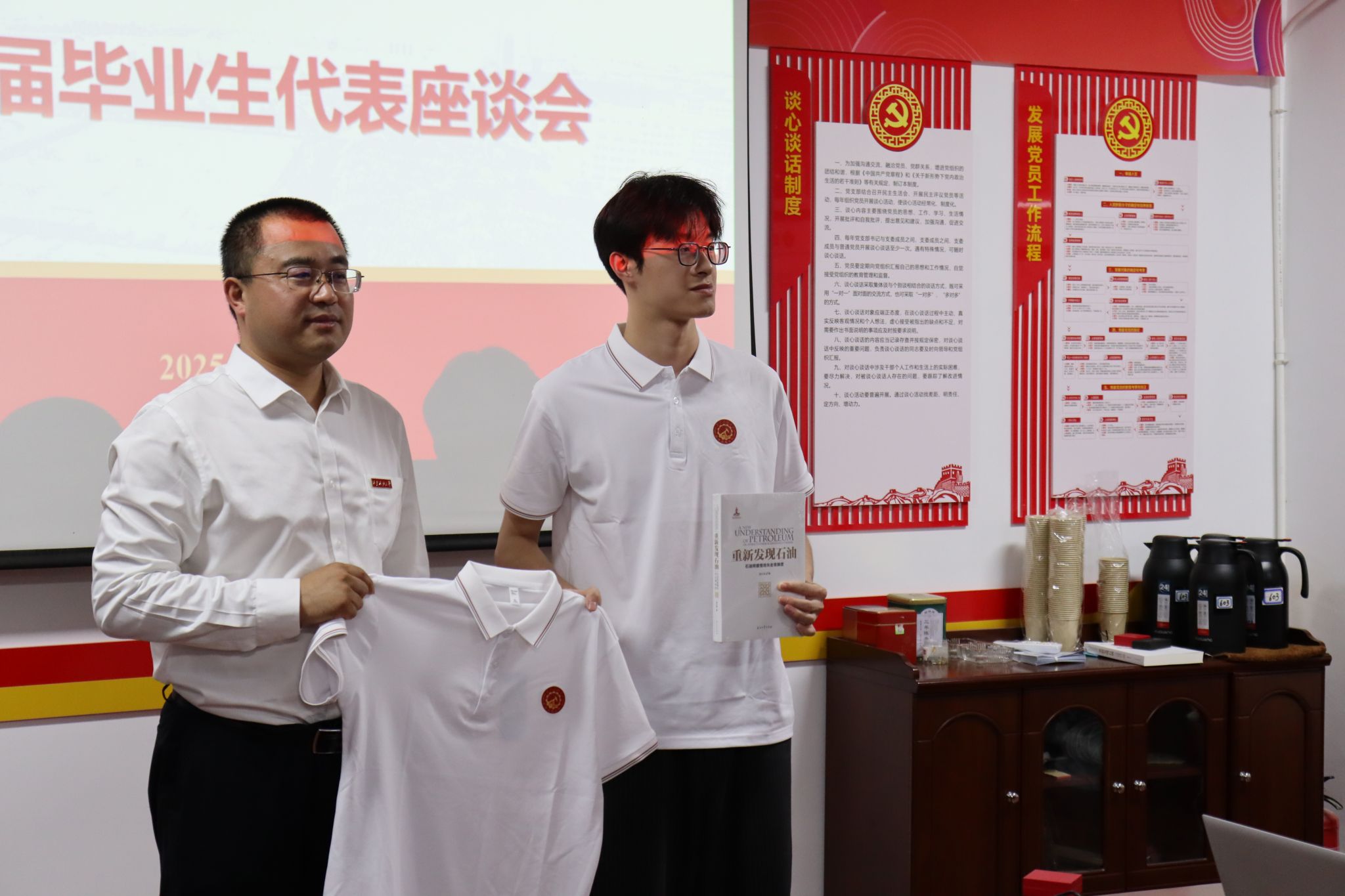 黃海為畢業(yè)生代表贈送了學院專屬紀念品。