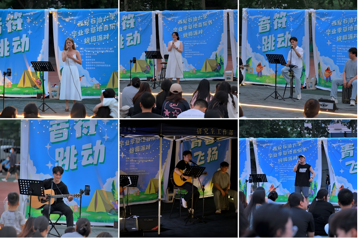 6月19日晚,西安石油大學(xué)雁塔校區(qū)足球場(chǎng)南側(cè)草坪化作露天音樂(lè)廳,由研究生工作部、音樂(lè)系主辦,校研究生會(huì)及石油工程學(xué)院、地球科學(xué)與工程學(xué)院研究生會(huì)共同承辦的“音符跳動(dòng)·青春飛揚(yáng)”畢業(yè)季草地音樂(lè)節(jié)在此溫情啟幕。研究生工作部、音樂(lè)系負(fù)責(zé)人、研究生工作部工作人員、輔導(dǎo)員代表及研究生代表共200余人參加了此次活動(dòng)?;顒?dòng)以音樂(lè)為紐帶,串聯(lián)起畢業(yè)學(xué)子的校園記憶,為離別季增添了一抹藝術(shù)亮色。