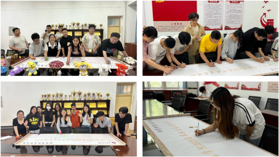 6月5日至6日,學院組織畢業(yè)生在鄠邑校區(qū)行知樓321室舉行畢業(yè)“長卷拓印”活動。畢業(yè)生們用“一滴油”印章在長卷上莊重拓印,一個個名字與校徽、校訓圖案交相輝映,形成一幅流動的青春圖譜?!斑@滴油像紐帶,把我們和母校永遠連在一起?!比斯ぶ悄軐I(yè)畢業(yè)生折浩小心翼翼地在長卷上留下名字,眼中滿是對母校的眷戀。