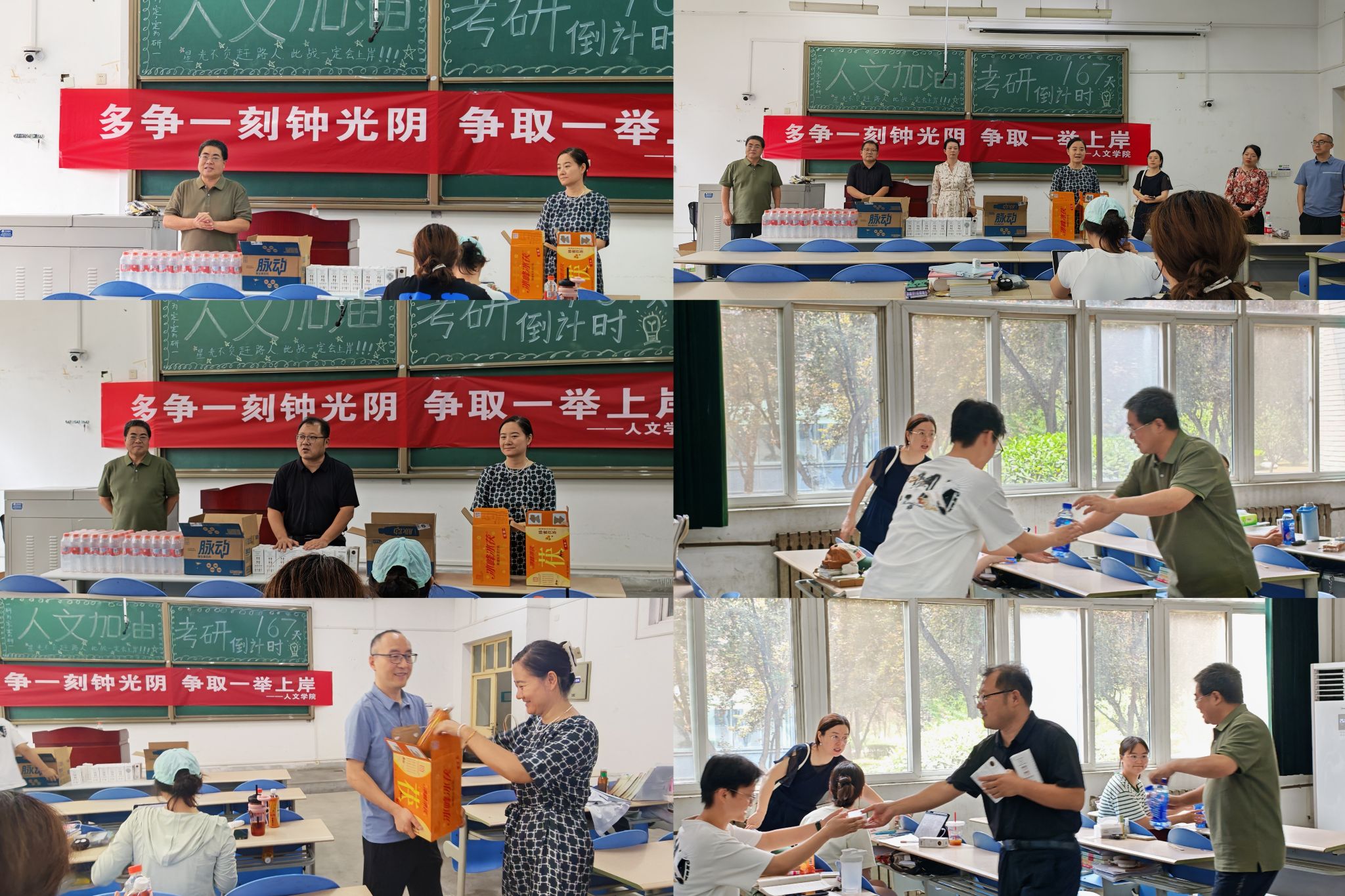 為鼓勵(lì)留校備戰(zhàn)學(xué)子,傳遞學(xué)院關(guān)心關(guān)懷,7月19日上午,人文學(xué)院黨委書記余小勇,院長(zhǎng)方亭,黨委副書記盛丹,副院長(zhǎng)方松林、蘭昆,系主任王敬艷、馬可、曹盼宮及輔導(dǎo)員代表前往鄠邑校區(qū)自習(xí)室,親切看望慰問(wèn)暑期留校備考學(xué)子,為他們送去清涼消暑慰問(wèn)品。