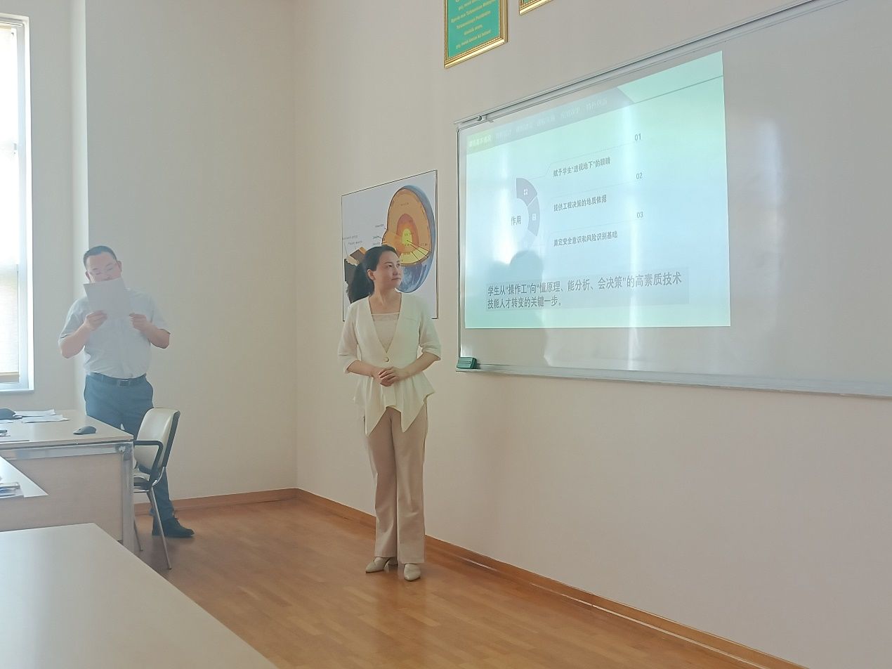 交流互鑒,合作基石更加穩(wěn)固。此次培訓(xùn)不僅是知識(shí)技術(shù)的傳遞,更是文化互信的構(gòu)建。從課堂互動(dòng)、方案研討到企業(yè)走訪、實(shí)驗(yàn)室交流,地質(zhì)組全體成員與土方師生、專家及管理人員建立了深厚的友誼。中國(guó)高等地質(zhì)教育的先進(jìn)理念、扎實(shí)作風(fēng)以及開(kāi)放合作的誠(chéng)意深深觸動(dòng)了土方伙伴。同時(shí),團(tuán)隊(duì)也深入了解土庫(kù)曼斯坦獨(dú)特的地質(zhì)教育環(huán)境和行業(yè)需求特色。這種深層次的雙向溝通,顯著增進(jìn)了相互理解與信任,為魯班工坊的可持續(xù)運(yùn)行和中土兩國(guó)在地質(zhì)工程教育領(lǐng)域的長(zhǎng)期互利合作鋪就了堅(jiān)實(shí)的人文基礎(chǔ)。