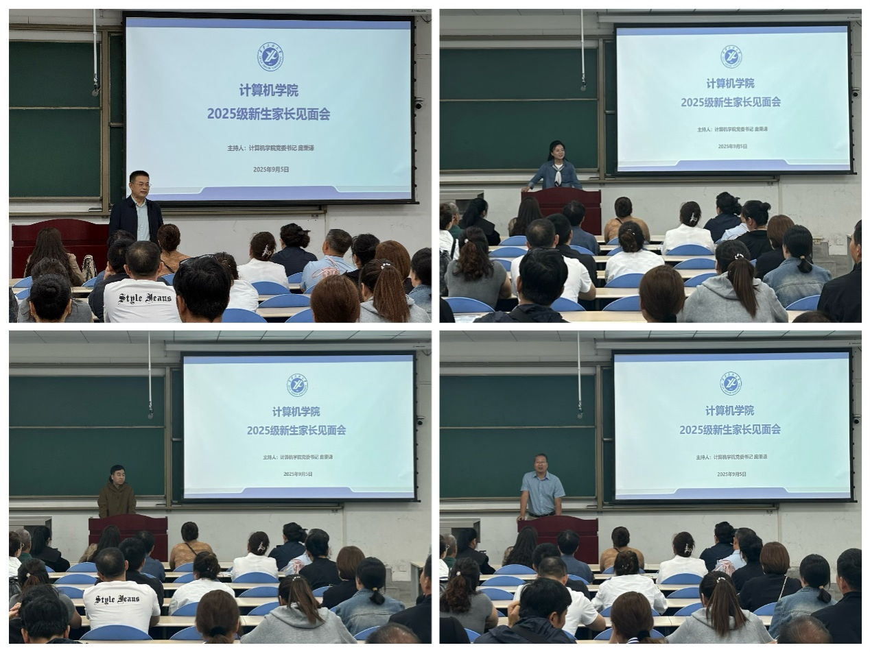 會(huì)上,龐秉謙首先代表學(xué)院歡迎新生及家長(zhǎng),介紹了計(jì)算機(jī)學(xué)院的發(fā)展現(xiàn)狀、學(xué)科變革歷史及近年來在教學(xué)、科研、人才培養(yǎng)等方面的成果;王瑩圍繞學(xué)生工作職責(zé)與特點(diǎn)展開,提出從“陪伴適應(yīng)”“安全守護(hù)”“心理關(guān)懷”三方面構(gòu)建家校聯(lián)合機(jī)制,共同守護(hù)學(xué)生成長(zhǎng)健康;張留美解讀了學(xué)院考研現(xiàn)狀、推免政策及研究生畢業(yè)去向與發(fā)展前景,為家長(zhǎng)明晰學(xué)生升學(xué)路徑;楊文陽強(qiáng)調(diào)本科基礎(chǔ)課程的重要性,對(duì)比分析大學(xué)與中學(xué)學(xué)習(xí)方式差異,并解讀學(xué)分及學(xué)籍管理政策。