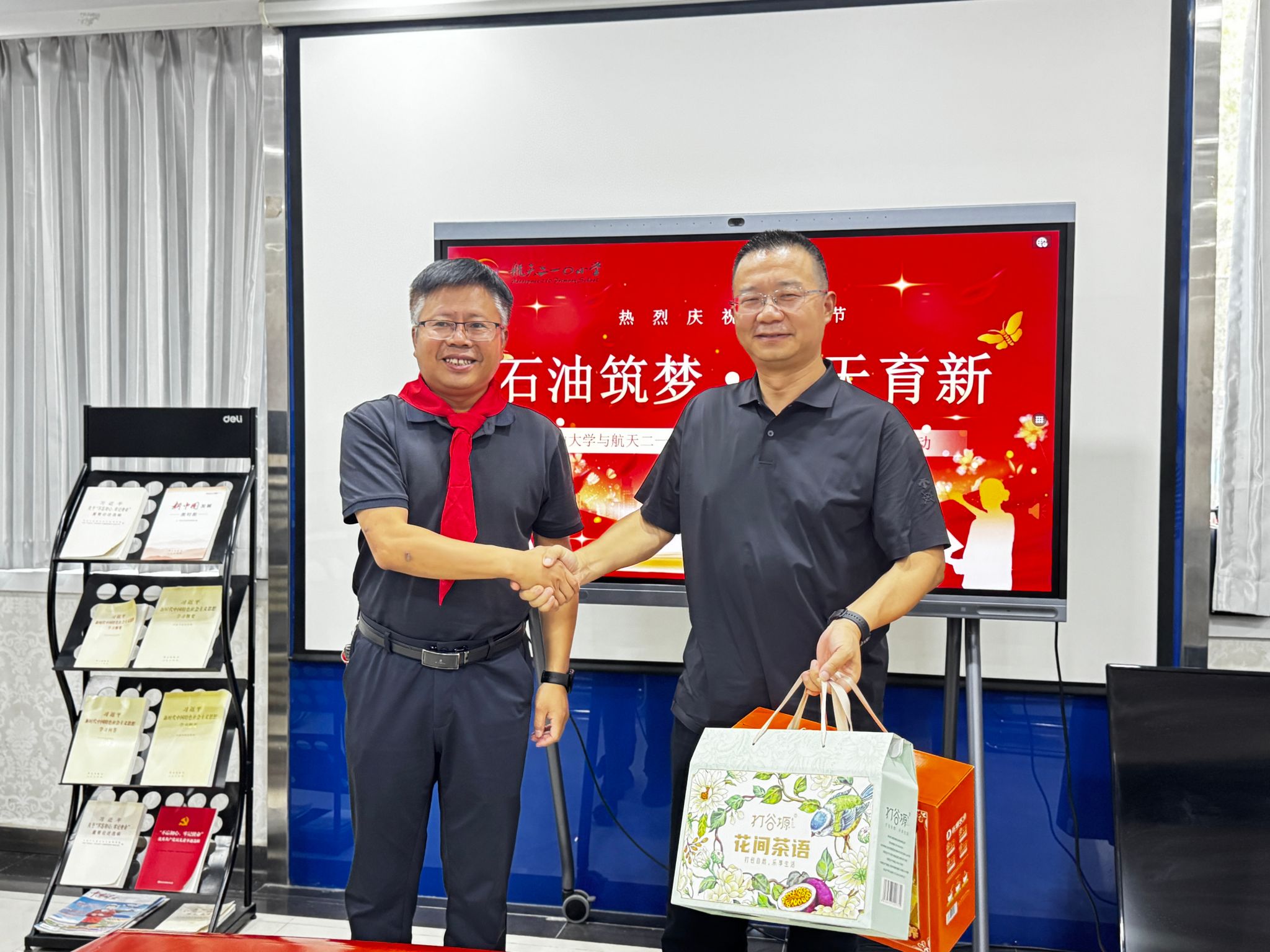 98日下午,副校長張驍勇帶隊前往航天210小學(xué)參加“石油筑夢 航天育新”教師節(jié)慶祝活動,校工會陪同走訪。航天210小學(xué)校長李寧,副校長劉雅鋒、段娣娜、翟毅博及部分教師代表參加了本次活動。