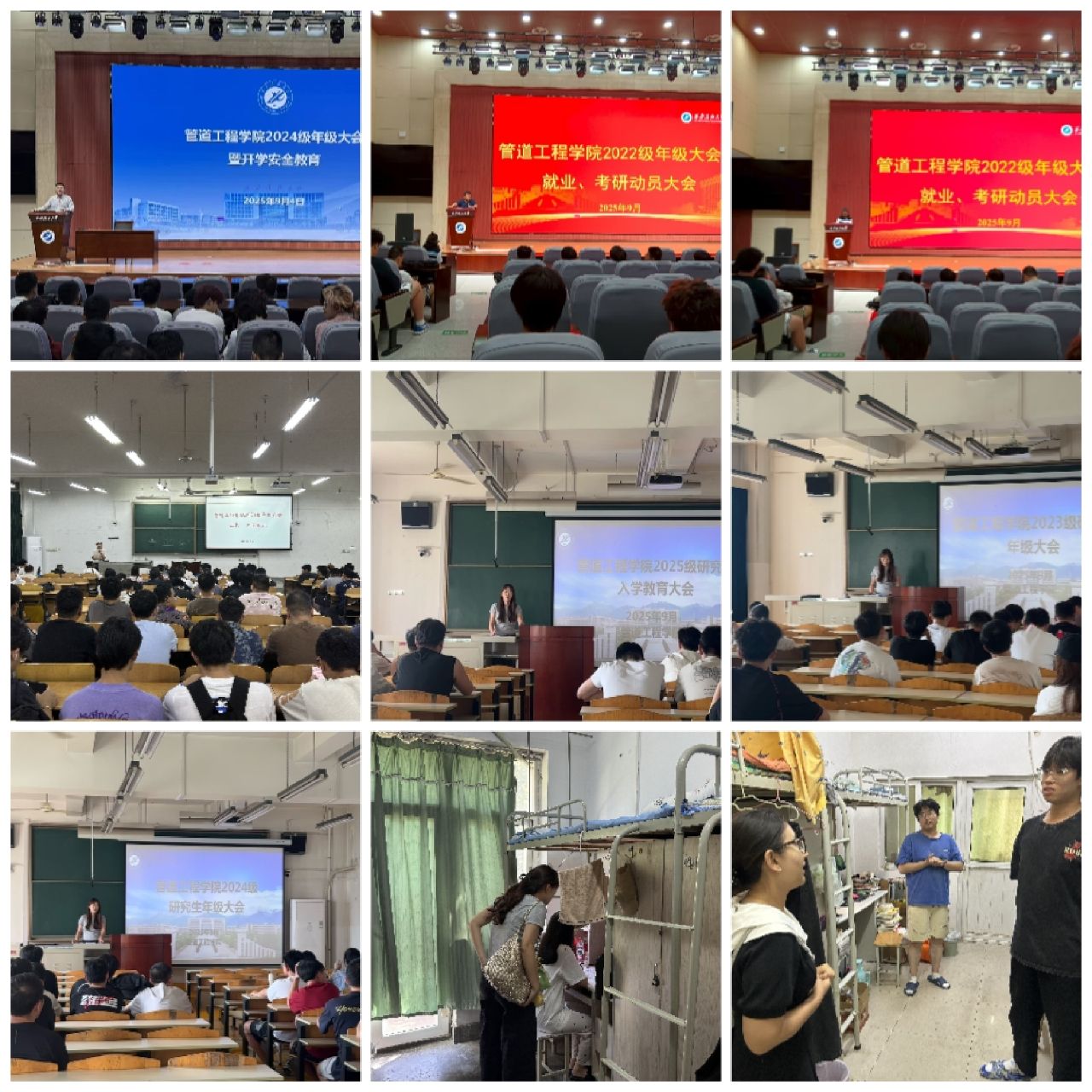 為確保新學(xué)期全院研究生、本科生在校期間的人身、財(cái)產(chǎn)安全,營(yíng)造安全、和諧的校園環(huán)境,開學(xué)前期,學(xué)院成立了學(xué)生安全教育工作小組,并詳細(xì)制定了《管道工程學(xué)院2025-2026學(xué)年第一學(xué)期開學(xué)學(xué)生安全教育工作方案》。9月1日至9月10日,學(xué)院研究生、本科生各年級(jí)均全面、系統(tǒng)地開展了新學(xué)期開學(xué)安全教育系列工作。