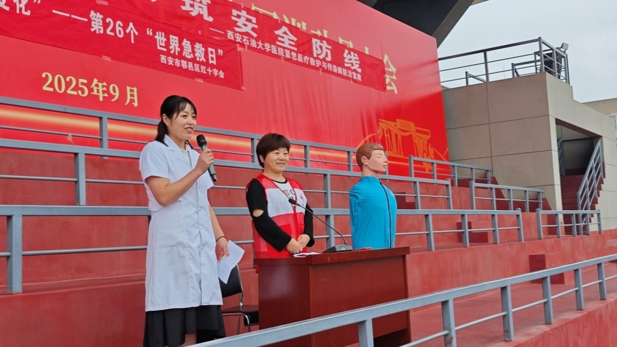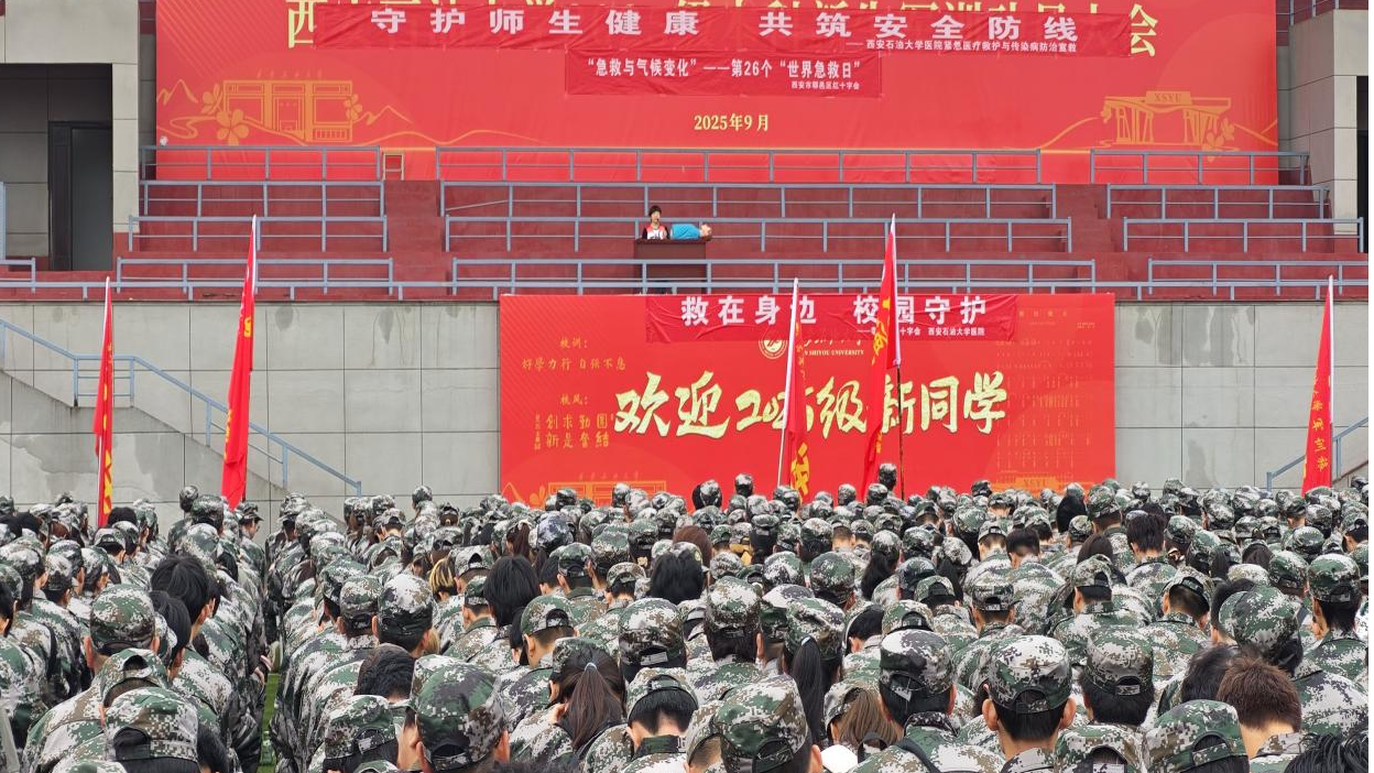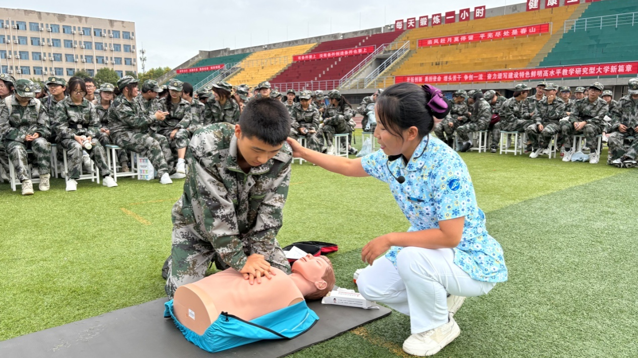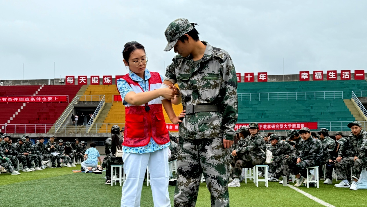 在9月13日第26個(gè)“世界急救日”(今年主題為“急救與氣候變化”)到來之際,為助力2025級新生平穩(wěn)適應(yīng)大學(xué)環(huán)境,系統(tǒng)提升其健康防護(hù)意識(shí)與突發(fā)事件應(yīng)對能力,9月12日,學(xué)校武裝部、校醫(yī)院攜手鄠邑區(qū)紅十字會(huì)、鄠邑區(qū)疾病預(yù)防控制中心,在鄠邑校區(qū)東操場聯(lián)合開展應(yīng)急救護(hù)培訓(xùn)、傳染病防治講座及醫(yī)保政策科普系列活動(dòng)。作為新生入學(xué)教育的“關(guān)鍵第一課”,活動(dòng)緊密對標(biāo)學(xué)?!叭珖谌本冉逃圏c(diǎn)學(xué)校”建設(shè)目標(biāo),深度踐行“人人學(xué)急救,急救為人人”的理念,結(jié)合“急救與氣候變化”主題,著力構(gòu)建系統(tǒng)化、多維度的校園健康保障機(jī)制。