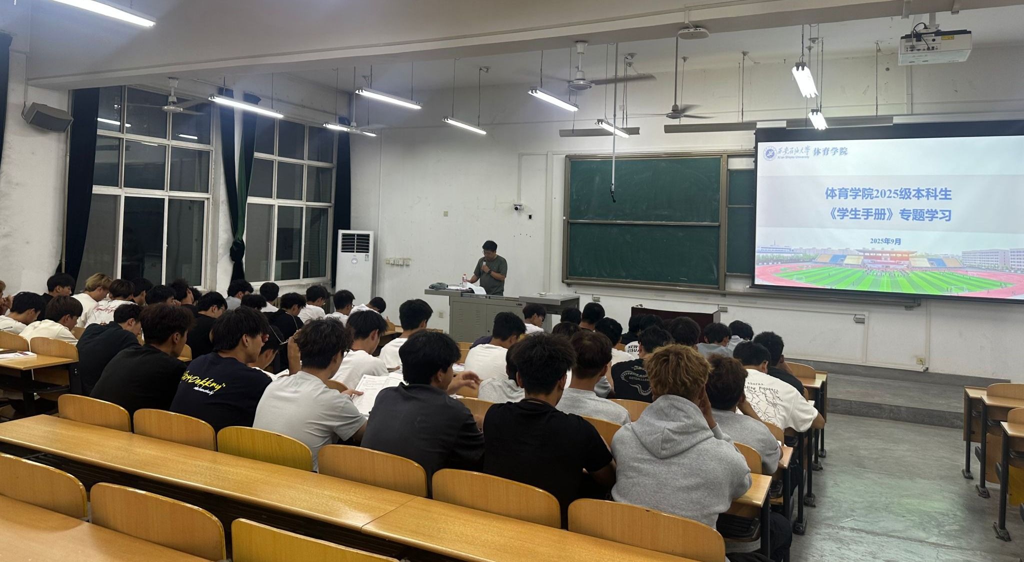 為筑牢新生思想防線、強(qiáng)化規(guī)則意識,9月17日晚,體育學(xué)院面向2025級本科新生開展了“廉潔教育第一課”及《學(xué)生手冊》專題學(xué)習(xí)活動,通過多元形式將廉潔文化與規(guī)則意識融入專業(yè)教育,為新生扣好大學(xué)“第一??圩印薄;顒佑审w育學(xué)院學(xué)工辦主任姜國平主持。