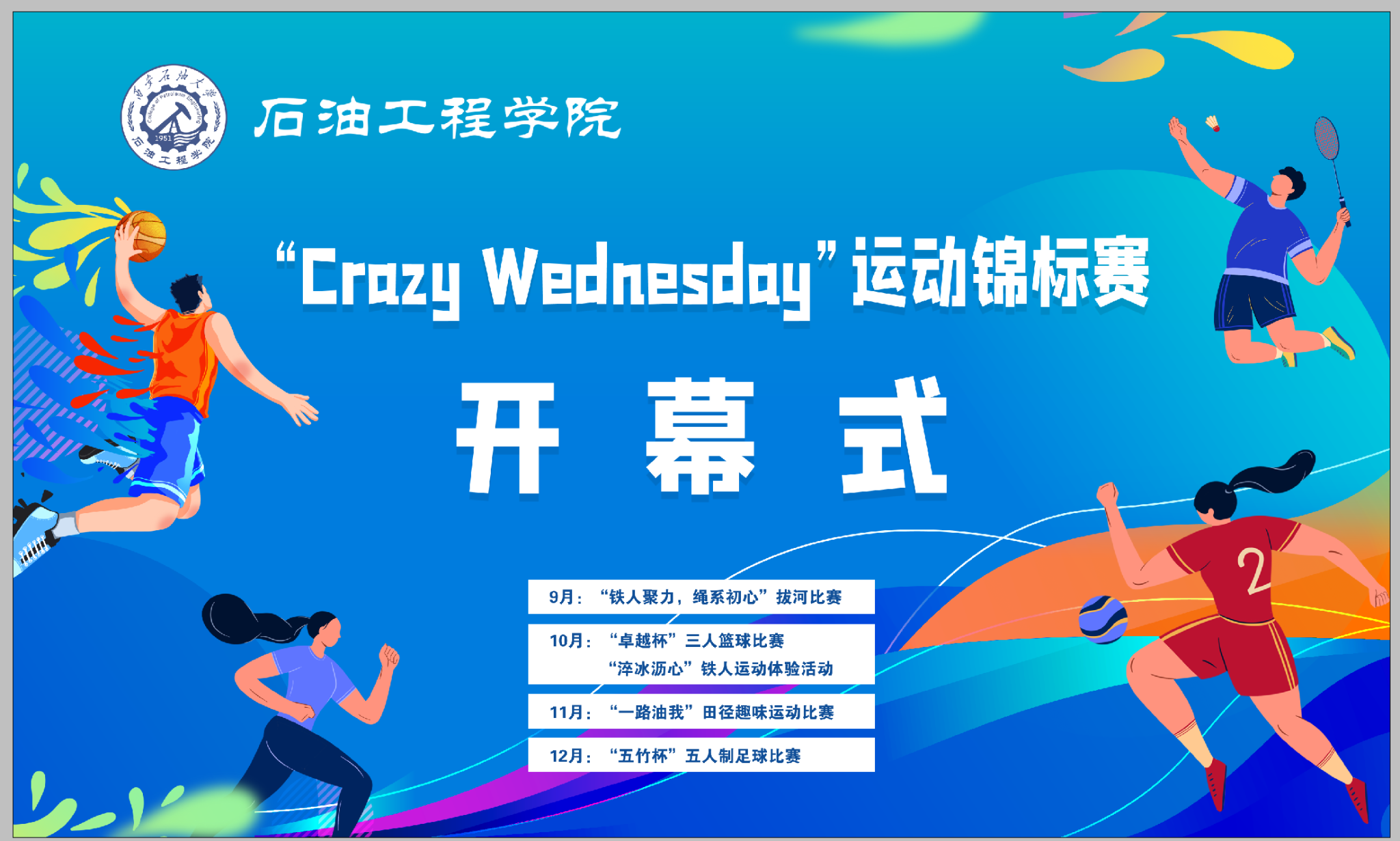 秋色浩無際,風(fēng)露洗晴空。924日,石油工程學(xué)院在鄠邑校區(qū)田徑場舉辦CRAZY WEDNESDAY瘋狂星期三運(yùn)動錦標(biāo)賽開幕式。副校長趙健,黨委辦公室(校長辦公室)、黨委學(xué)生工作部、石油工程學(xué)院、體育學(xué)院負(fù)責(zé)同志,受聘教練員、師生代表300余人參加開幕式。