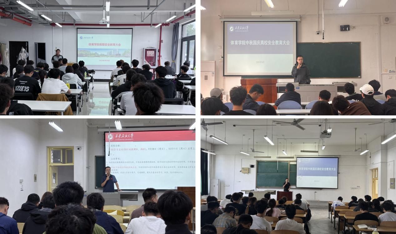 為切實做好中秋國慶假期學(xué)生安全教育工作,引導(dǎo)學(xué)生合理安排假期生活,提高新生自我管理能力,維護校園安全穩(wěn)定,9月23日至28日,按照學(xué)院黨總支假期安全工作安排,體育學(xué)院各年級召開了中秋國慶假期安全教育大會。大會由學(xué)院學(xué)工辦主任姜國平、輔導(dǎo)員老師張澤正主講,學(xué)院各年級學(xué)生參會。