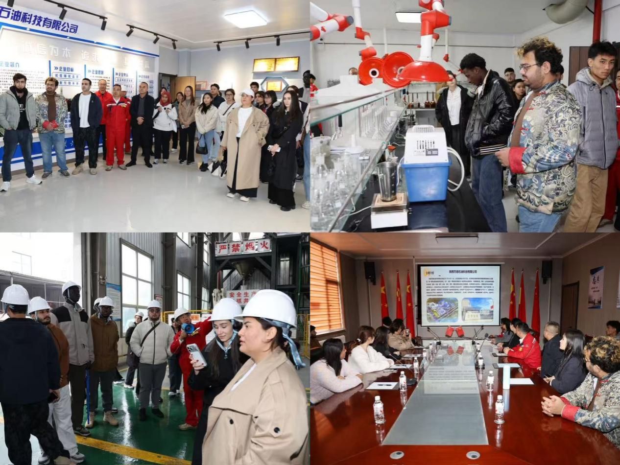 活動(dòng)首站聚焦中國能源領(lǐng)域發(fā)展,師生一行到訪陜西萬德石油科技有限公司。公司副總經(jīng)理李耀龍對(duì)師生表示歡迎,結(jié)合企業(yè)發(fā)展歷程、主營業(yè)務(wù),系統(tǒng)介紹石油行業(yè)最新形勢(shì)與未來戰(zhàn)略規(guī)劃,幫助國際學(xué)生建立對(duì)中國能源企業(yè)創(chuàng)新成果的整體認(rèn)知。在工作人員帶領(lǐng)下,國際學(xué)生依次走進(jìn)泥漿實(shí)驗(yàn)室、理化實(shí)驗(yàn)室、固井實(shí)驗(yàn)室、自控中心及高分子集合物、纖維素生產(chǎn)車間,直觀了解各類設(shè)備功能、實(shí)驗(yàn)原理與生產(chǎn)流程,清晰掌握現(xiàn)代技術(shù)在石油科技領(lǐng)域的實(shí)際應(yīng)用?;?dòng)交流環(huán)節(jié)中,國際學(xué)生結(jié)合自身專業(yè)知識(shí),圍繞參觀中的疑問積極提問;企業(yè)工作人員逐一細(xì)致解答,并就國際學(xué)生未來在華、在企就業(yè)發(fā)展展開深入探討,為學(xué)生職業(yè)規(guī)劃提供參考。