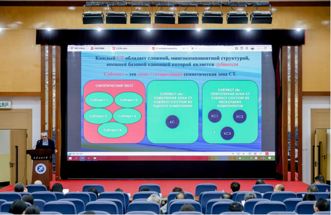 西安石油大學(xué)Dmitry I. Ivanov教授作題為《認(rèn)知人文符號學(xué)在區(qū)域國別研究中的應(yīng)用》的主旨報(bào)告,強(qiáng)調(diào)在認(rèn)知人文符號學(xué)理論框架下,區(qū)域被視為一個(gè)多層面的多義符號對象—由不同類型復(fù)合文本構(gòu)成的系統(tǒng)。區(qū)域是一個(gè)主體空間。