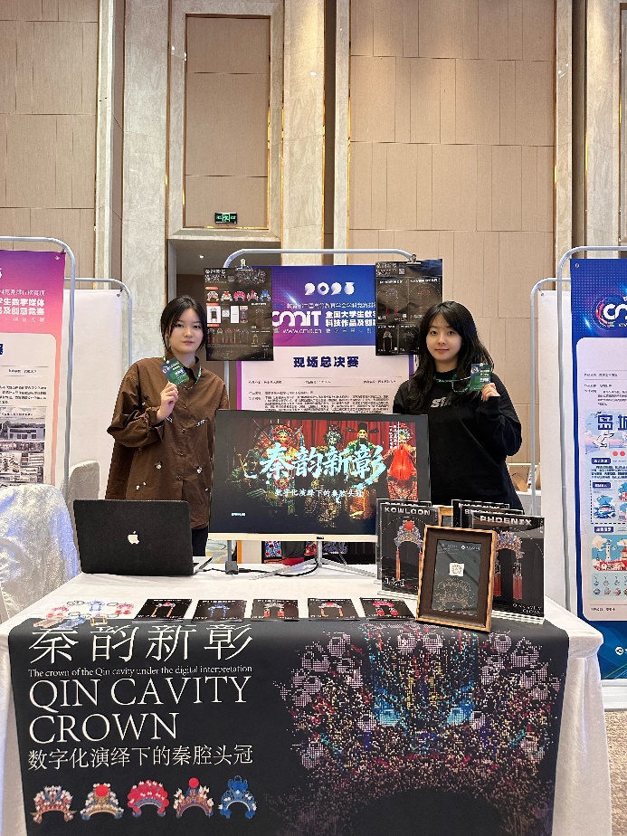 在高手云集的全國總決賽現(xiàn)場,我校學(xué)子憑借將傳統(tǒng)文化與數(shù)字技術(shù)深度融合的創(chuàng)新設(shè)計(jì)脫穎而出。由何奇穎老師指導(dǎo),藝碩2402班史文婧、王翼鵬同學(xué)完成的作品《秦韻新彰——數(shù)字化演繹下的秦腔頭冠》,聚焦“數(shù)字藝術(shù)表現(xiàn)”,通過分層設(shè)計(jì)與動(dòng)態(tài)粒子效果,讓靜態(tài)的秦腔頭冠煥發(fā)出動(dòng)態(tài)的藝術(shù)生命力。由陳慶老師指導(dǎo),2022級視覺傳達(dá)設(shè)計(jì)專業(yè)穆子鈺、李義蔓、郭燕子同學(xué)完成的作品《延川丹彩——陜北匠藝丹青紋樣文創(chuàng)設(shè)計(jì)》,則投身于“民族文化創(chuàng)新表達(dá)”專項(xiàng)賽道,對陜北傳統(tǒng)紋樣進(jìn)行現(xiàn)代轉(zhuǎn)譯,展現(xiàn)了其深厚的文化內(nèi)涵與時(shí)代氣息。