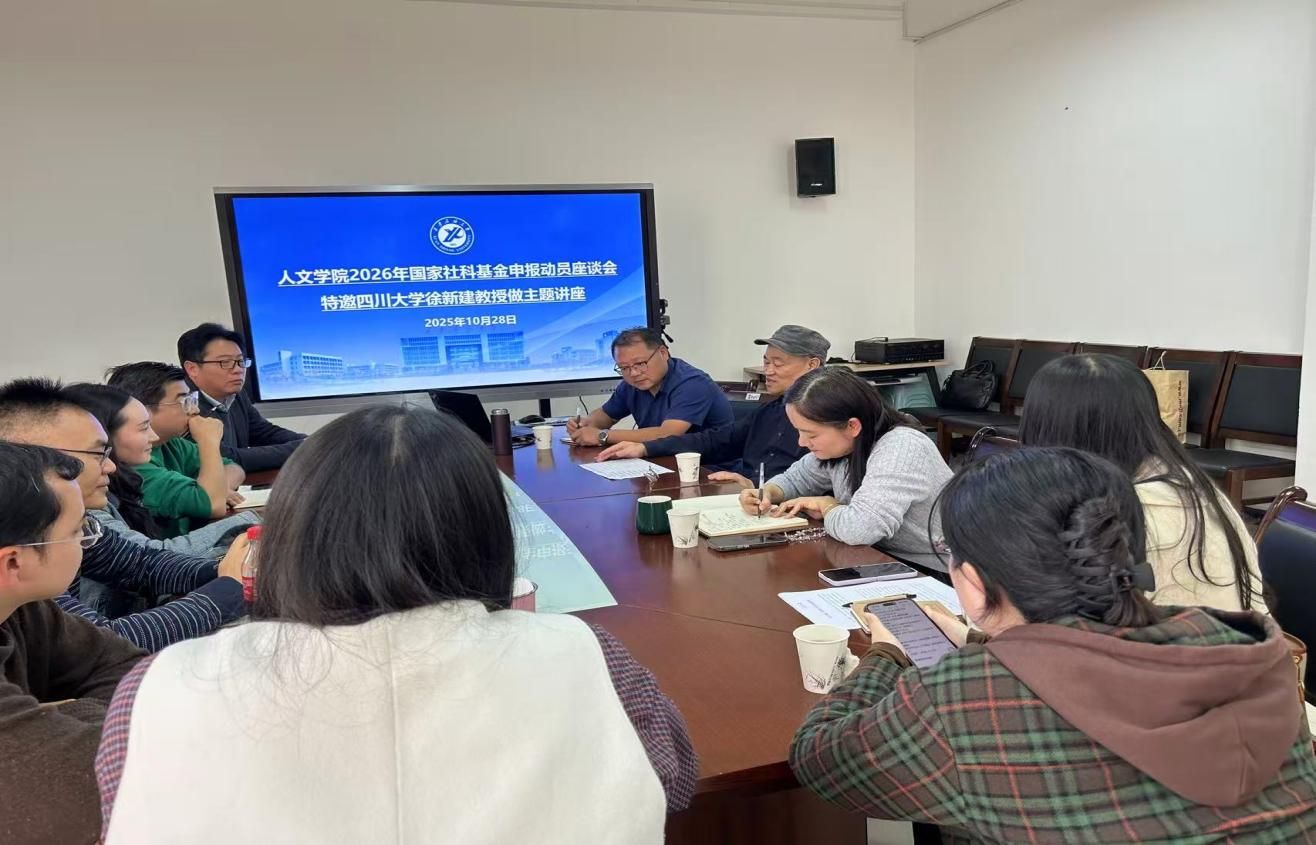 為進(jìn)一步落實(shí)學(xué)校國(guó)家社科基金項(xiàng)目申報(bào)會(huì)議精神,高效推進(jìn)學(xué)院科研工作,全方位鞏固與提升學(xué)院國(guó)家社科基金項(xiàng)目申報(bào)質(zhì)量,人文學(xué)院于10月28日下午在鄠邑校區(qū)崇文樓357會(huì)議室召開(kāi)2026年度國(guó)家社科基金項(xiàng)目申報(bào)動(dòng)員會(huì)。學(xué)院特邀四川大學(xué)徐新建教授作指導(dǎo),動(dòng)員會(huì)由人文學(xué)院院長(zhǎng)方亭主持,副院長(zhǎng)方松林和20位青年骨干教師參加了座談交流。