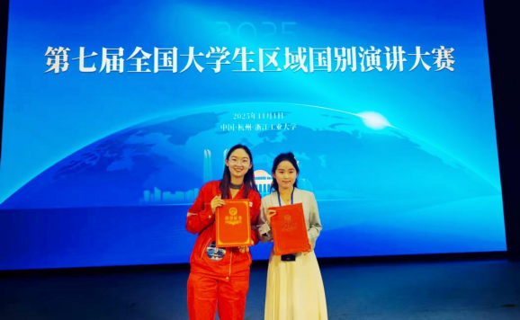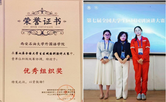 11月1日,第七屆全國(guó)大學(xué)生區(qū)域國(guó)別演講大賽在杭州落下帷幕。馬克思主義學(xué)院24級(jí)研究生陸雨萌和石油工程學(xué)院23級(jí)本科生施瀾兩位同學(xué)在外國(guó)語(yǔ)學(xué)院教師張磊指導(dǎo)下,經(jīng)過(guò)初賽、復(fù)賽和決賽層層選拔和考驗(yàn),斬獲全國(guó)總決賽三等獎(jiǎng),取得我校學(xué)子在該項(xiàng)競(jìng)賽中的歷史性突破。外國(guó)語(yǔ)學(xué)院憑借出色的組織能力,獲得優(yōu)秀組織獎(jiǎng)。