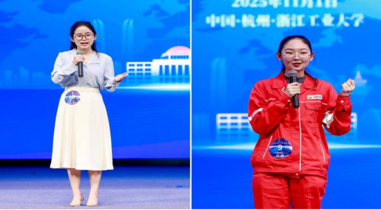 大賽決賽分為命題演講和即興演講兩個(gè)環(huán)節(jié),全面考察選手的語(yǔ)言表達(dá)能力、邏輯思維深度以及臨場(chǎng)心理素質(zhì)。陸雨萌同學(xué)緊扣主題,結(jié)合自身專業(yè)學(xué)習(xí)與外語(yǔ)學(xué)習(xí)的實(shí)際,通過(guò)富有感染力的表達(dá),充分展現(xiàn)了其扎實(shí)的語(yǔ)言功底和靈活的應(yīng)變能力。施瀾同學(xué)身著石油工服,在舞臺(tái)上詮釋著對(duì)能源安全的擔(dān)當(dāng),她既滿懷“鐵人精神”,又將個(gè)人志向與全球發(fā)展議題緊密接軌。兩位同學(xué)引經(jīng)據(jù)典、繪聲繪色的表現(xiàn)獲得了專家評(píng)委們的一致好評(píng)。