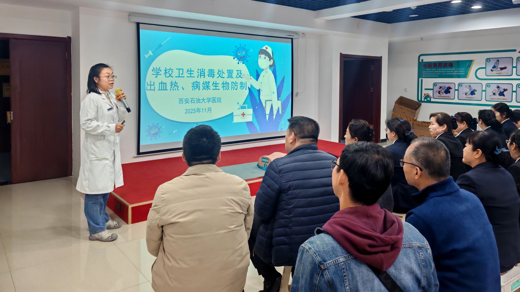 為全面提升校園應(yīng)急保障能力,筑牢師生生命安全防線,夯實幸福西石大建設(shè)的安全根基,推動第三批“急救校園”建設(shè)落地見效,2025年11月5日下午,西安市鄠邑區(qū)紅十字會、校工會與校醫(yī)院聯(lián)合開展第二期教職工應(yīng)急救護專項培訓(xùn),40余名教職工(以后勤工作人員為主)踴躍參與,以專業(yè)賦能注入安全動能。同步開展學(xué)校衛(wèi)生消毒處置及出血熱、病媒生物防治科普講座,以專業(yè)賦能全方位筑牢校園安全防線。