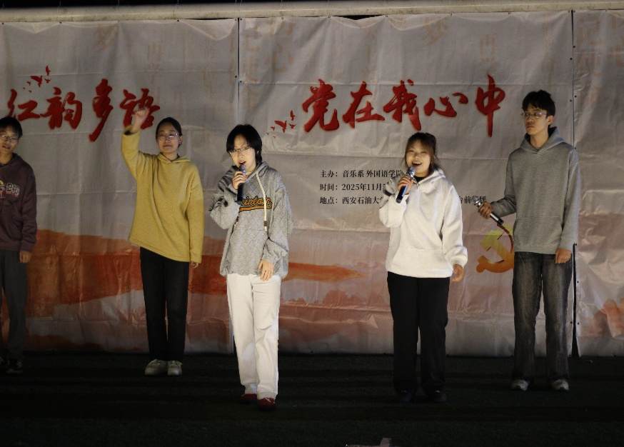 11月5日,鄠邑校區(qū)東田徑場草坪星光璀璨、樂聲飛揚,為期一晚的校園草地音樂節(jié)在師生們的熱烈歡呼聲中圓滿落幕。本次音樂節(jié)由音樂(系)主辦,外國語學院承辦,以“黨在我心中”為主題,以音樂為媒回望百年征程,豐富校園文化生活,為學子們提供展現(xiàn)自我的平臺,吸引了數(shù)百名師生歡聚一堂,在旋律中感悟當?shù)某跣暮褪姑?/p>