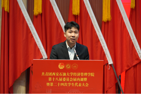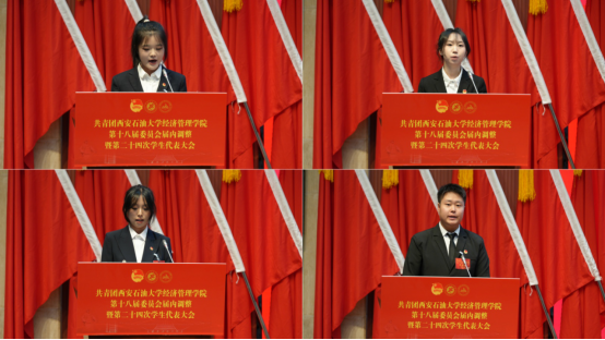 會上,學(xué)院團(tuán)委書記張碩宣讀了《共青團(tuán)西安石油大學(xué)經(jīng)濟管理學(xué)院委員會關(guān)于第十八屆委員會組織成員調(diào)整任命的通知》,新任團(tuán)委委員依次表態(tài)發(fā)言。團(tuán)學(xué)指導(dǎo)老師李政宣讀了《第二十四次學(xué)生代表大會選舉辦法》,與會代表民主投票選舉產(chǎn)生了新一屆學(xué)生委員會委員。大會聽取并審議通過了《大會籌備工作報告》《第二十三屆學(xué)生會年度工作報告》和《第二十四次學(xué)生代表大會提案工作報告》,新任團(tuán)委委員、當(dāng)選學(xué)生委員會委員面向團(tuán)旗進(jìn)行了莊嚴(yán)宣誓。