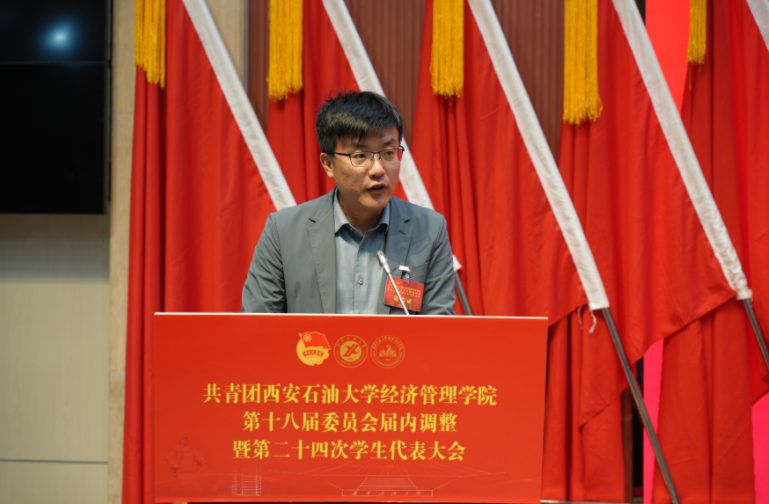 2025年11月6日,共青團(tuán)西安石油大學(xué)經(jīng)濟管理學(xué)院第十八屆委員會屆內(nèi)調(diào)整暨第二十四次學(xué)生代表大會在鄠邑校區(qū)弘石學(xué)術(shù)報告廳順利召開。學(xué)院黨委書記談建勤、校團(tuán)委書記王剛、經(jīng)濟管理學(xué)院黨委副書記趙紀(jì)飛、經(jīng)濟管理學(xué)院團(tuán)委書記張碩、學(xué)院各年級團(tuán)總支書記、輔導(dǎo)員以及各兄弟院系學(xué)生會主席團(tuán)代表、學(xué)院學(xué)生代表200余人參加了此次會議。