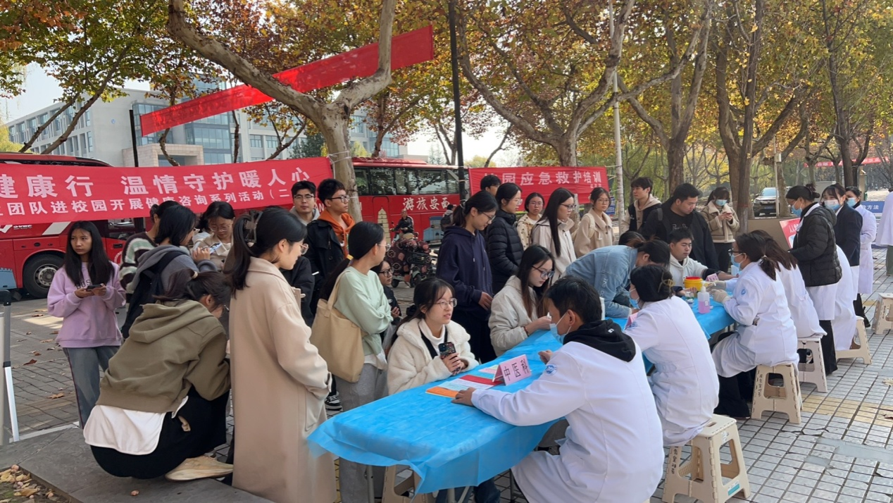 在雁塔校區(qū),醫(yī)護(hù)人員懷著飽滿熱情,為近百名師生及離退休職工開展免費(fèi)血壓血糖檢測(cè)、慢性病管理指導(dǎo)、中醫(yī)體質(zhì)辨識(shí)等服務(wù),針對(duì)秋冬季常見傳染病進(jìn)行科普宣講,用專業(yè)知識(shí)為健康“把脈問診”;鄠邑校區(qū)活動(dòng)現(xiàn)場(chǎng)暖意融融,金黃銀杏與暖陽(yáng)相映成景,中醫(yī)診療人氣火爆,骨干中醫(yī)大夫通過(guò)“望、聞、問、切”傳統(tǒng)手法,為師生診斷疾病、指導(dǎo)生活方式調(diào)整及用藥建議,助力改善亞健康狀態(tài),現(xiàn)場(chǎng)排隊(duì)隊(duì)伍全程未斷,醫(yī)護(hù)人員堅(jiān)守崗位直至看完最后一位咨詢者。