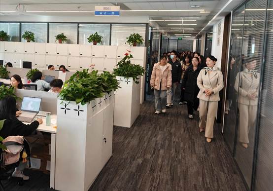 在工作人員引導(dǎo)下,師生一行參觀了事務(wù)所的審計(jì)一部、工程造價(jià)部、技術(shù)支持部及員工共享空間等。通過(guò)實(shí)地走訪(fǎng),同學(xué)們對(duì)事務(wù)所的組織架構(gòu)與業(yè)務(wù)流程有了更為直觀的認(rèn)識(shí),切身感受到立信嚴(yán)謹(jǐn)專(zhuān)業(yè)的工作氛圍和以人為本的員工關(guān)懷,深刻體會(huì)到其團(tuán)隊(duì)協(xié)作精神與客戶(hù)服務(wù)理念。