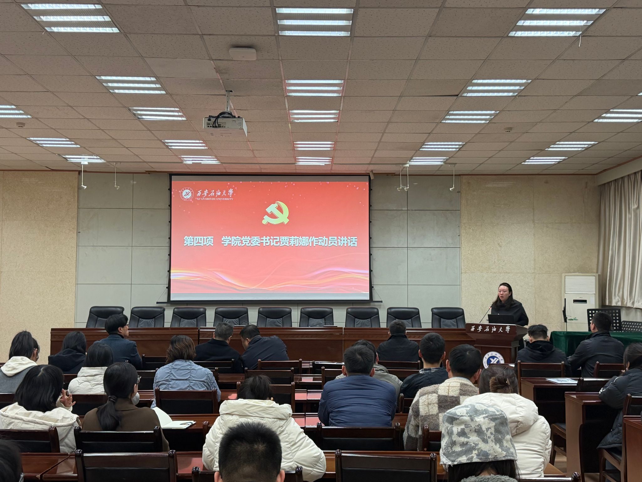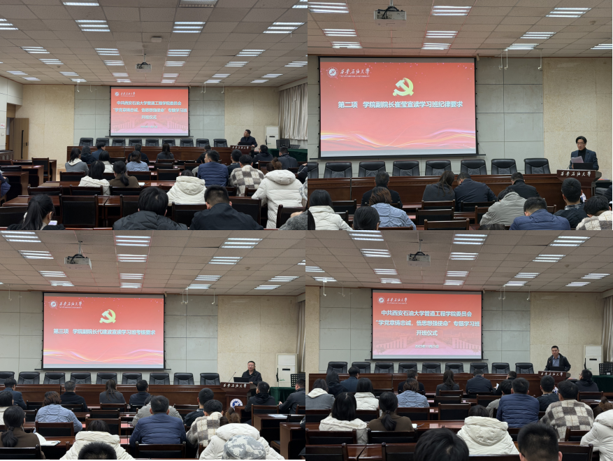為深入學(xué)習(xí)貫徹黨的二十屆四中全會精神,落實(shí)學(xué)校第三次黨代會精神,全面提升基層黨組織建設(shè)質(zhì)量,強(qiáng)化二級學(xué)院的政治屬性和育人責(zé)任,促進(jìn)黨建和中心工作融合互促,重點(diǎn)提升教師特別是黨員教師在教學(xué)、科研、管理和學(xué)習(xí)中的模范帶頭作用,結(jié)合深入貫徹中央八項(xiàng)規(guī)定精神學(xué)習(xí)教育工作安排,11月21日,管道工程學(xué)院黨委在雁塔校區(qū)第三會議室舉辦了“學(xué)黨章鑄忠誠,悟思想強(qiáng)使命”專題學(xué)習(xí)班開班儀式,學(xué)院班子全體成員、全體教職工、研究生黨員代表參加了會議。學(xué)院學(xué)生工作辦公室主任孫劍秋主持會議。