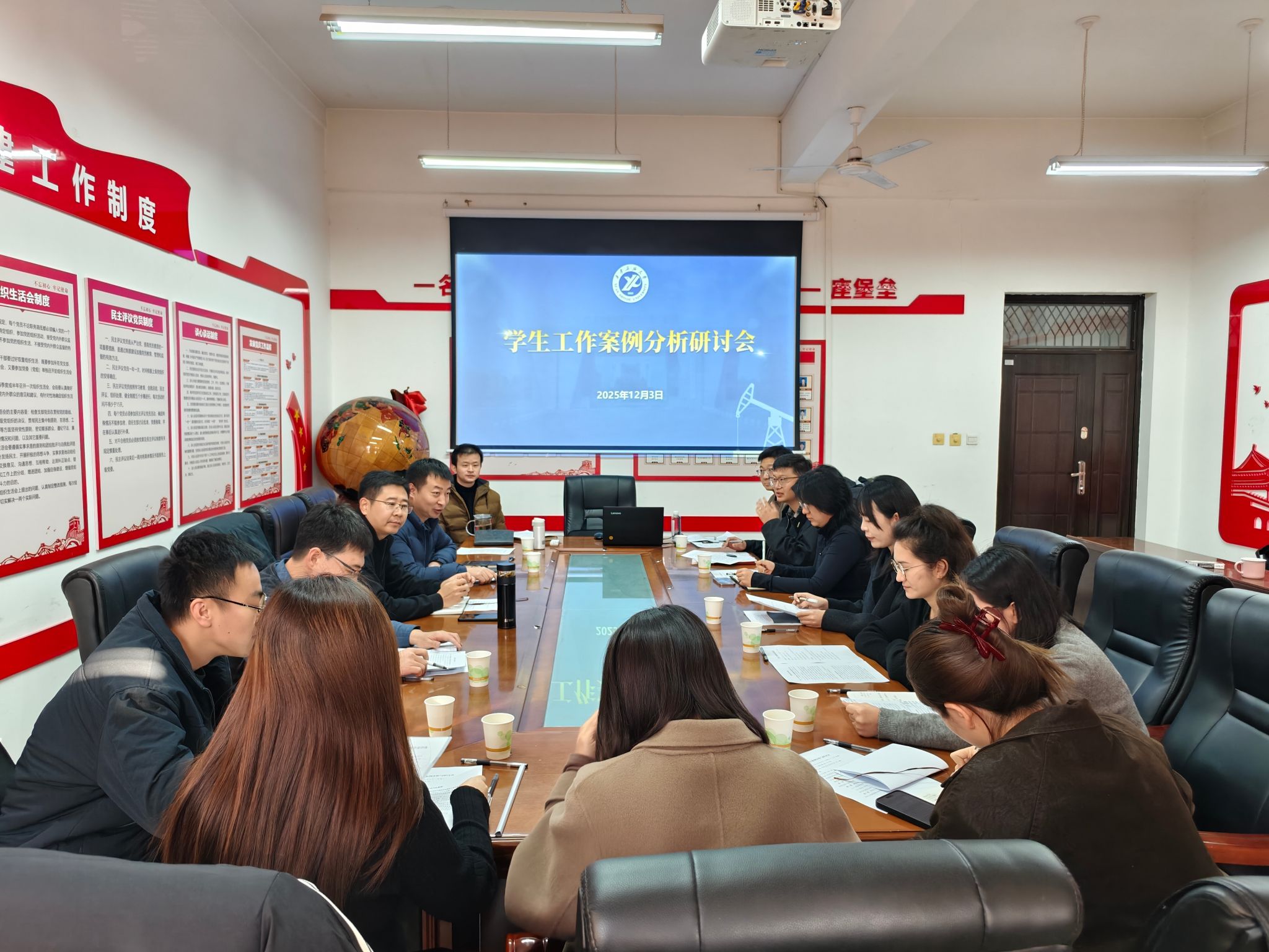 為深入探討新時(shí)代高校學(xué)生工作的新挑戰(zhàn)與新路徑,提升輔導(dǎo)員隊(duì)伍的專業(yè)素養(yǎng)與應(yīng)急處置能力,123日上午,學(xué)生工作案例分析與研討會(huì)在開物樓561會(huì)議室順利舉行。學(xué)生工作部(處)部(處)長(zhǎng)王亮到會(huì)指導(dǎo),新能源學(xué)院、石油工程學(xué)院全體學(xué)工人員參會(huì)。