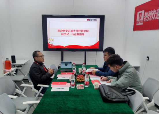 陜西金標尺教育科技有限公司總裁文毅對趙紀飛、王業(yè)林一行的到訪表示熱烈歡迎,隨后帶領(lǐng)調(diào)研小組實地參觀了公司教學研發(fā)中心、學員服務大廳及就業(yè)指導工作室,詳細介紹了企業(yè)發(fā)展歷程、核心業(yè)務板塊,涵蓋了公職類考試培訓、職業(yè)技能提升、企業(yè)管理咨詢等,以及當前崗位人才需求方向,重點提及對具備語言文字表達能力、市場營銷思維及教育行業(yè)運營經(jīng)驗的復合型管理人才的迫切需求。