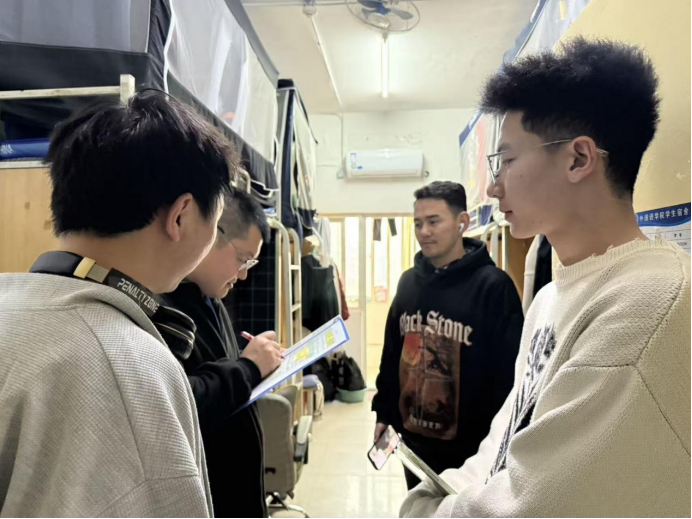 共建文明宿舍,營造安全小家。宿舍是學(xué)生生活的重要場所,也是安全管理重點區(qū)域。12月8日下午,輔導(dǎo)員對宿舍進(jìn)行了走訪和檢查,著重排查了違規(guī)電器、存放易燃易品等安全隱患,提醒學(xué)生要做到人走斷電、鎖好門窗,切實防火防盜等安全隱患,督促學(xué)生即查即改。通過排查,引導(dǎo)學(xué)生遵守管理規(guī)定,將安全教育融入日常,共創(chuàng)安全、溫馨居住環(huán)境。