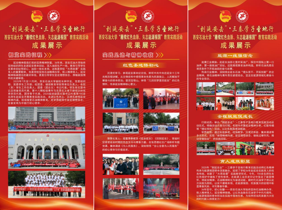 36年來,學(xué)校始終堅持組織師生走進(jìn)延安革命舊址、深入油田生產(chǎn)一線,教育引導(dǎo)學(xué)生在革命舊址悟初心、油田一線長本領(lǐng),這既是我?!按笏颊n”實踐育人的重要載體,也是我校堅持石油精神辦學(xué),鐵人精神育人,延安精神鑄魂理念的最好體現(xiàn),更是引導(dǎo)學(xué)生堅定理想信念、厚植家國情懷的關(guān)鍵舉措。