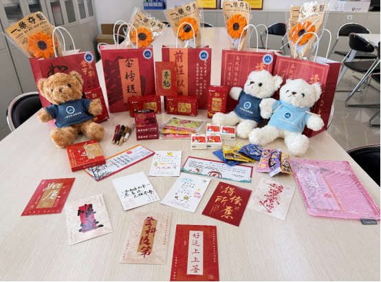 會后,學(xué)院領(lǐng)導(dǎo)老師們?yōu)橥瑢W(xué)們發(fā)放了精心準備的“逢考必過”考研慰問大禮包。禮包內(nèi)含印有學(xué)院院徽的文具套裝、暖寶寶、旺仔棒棒糖、紙巾、向日葵以及貼有“馬到橙功”祝福語的橙子等暖心物品,寓意心想事“橙”、一路長“旺”、“紙”定高分、一舉奪“葵”,承載著全院師生對考研學(xué)子的殷切期望與美好祝愿。收到禮包的同學(xué)們紛紛表示,這份心意讓他們深切感受到來自學(xué)院的溫暖與支持,也更加堅定了沖刺的信心。
